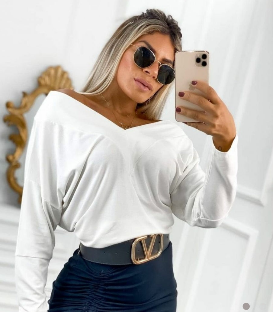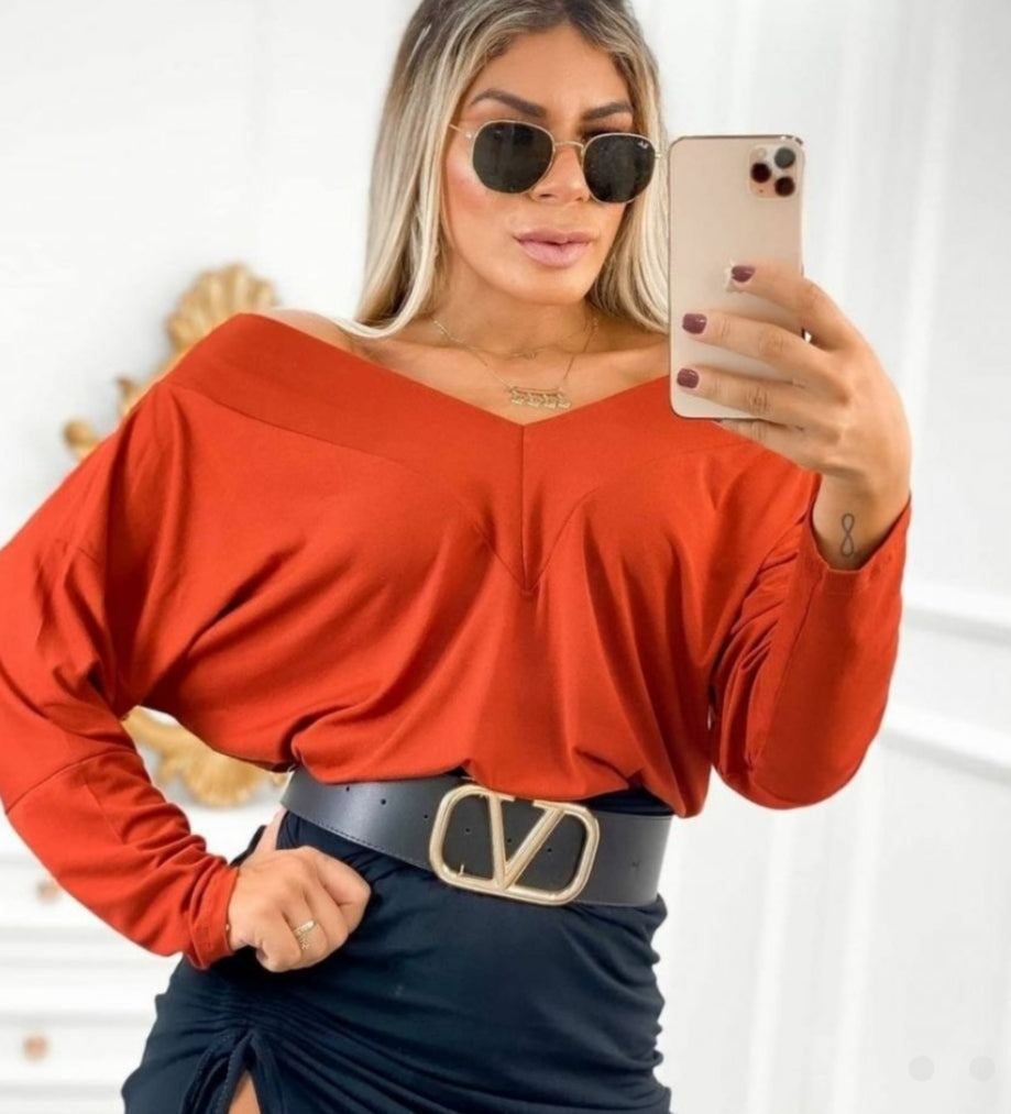 Blusa em viscose fria  manga longa decote em v tecido leve e fresquinho , modelo sobrinho e confortável , não marca . Disponível em duas cores do tamanho 36 ao 44