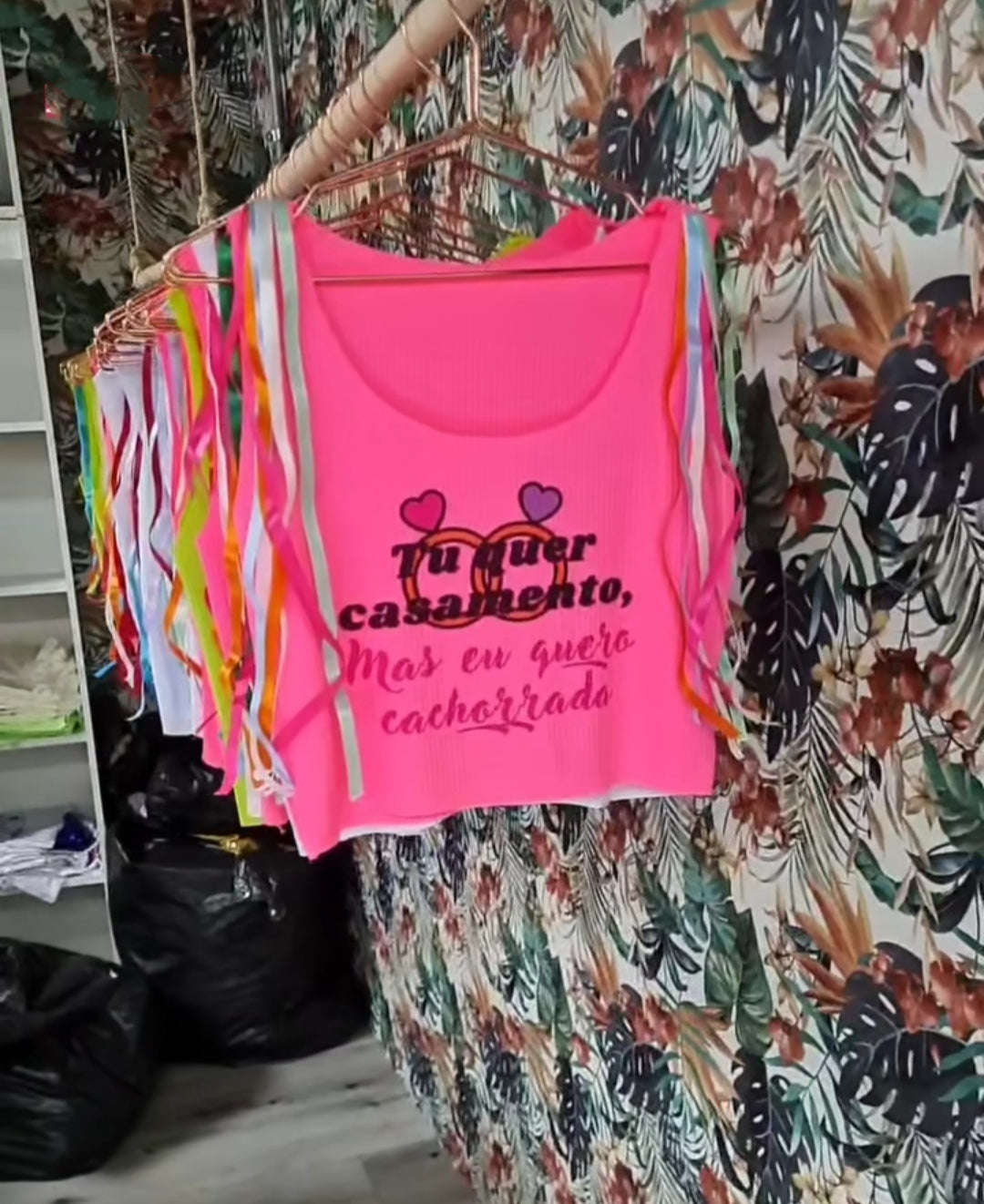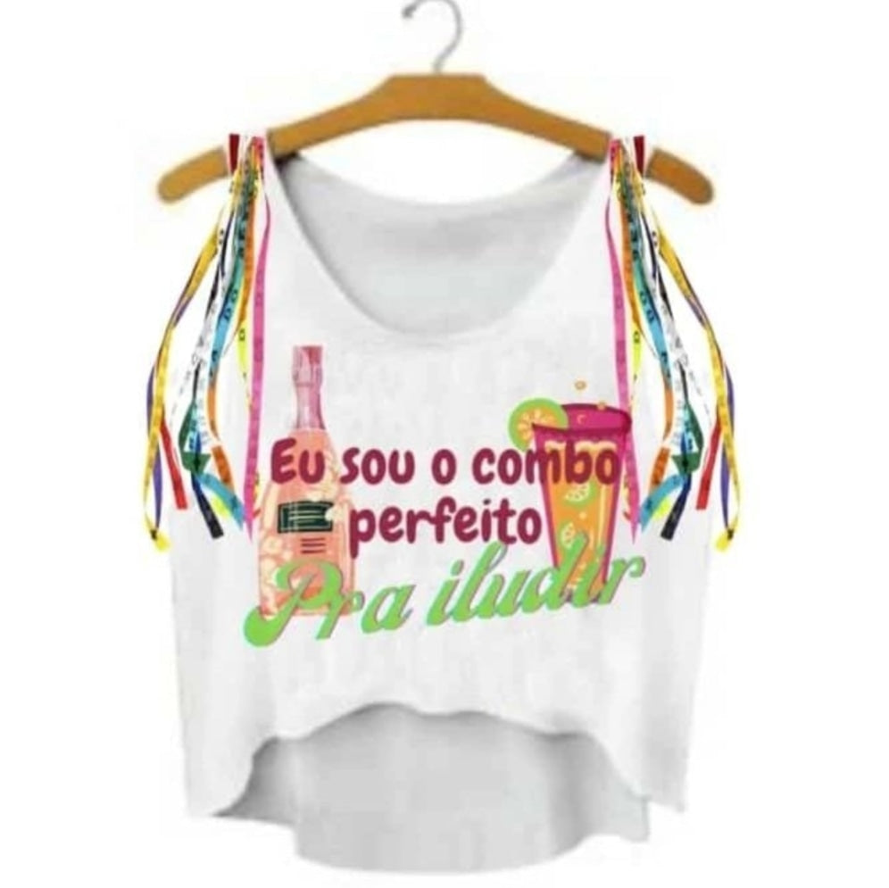 Crooped carnaval tecido malha com fitilhos no ombro, estampa digitalizada super diferenciada veste tamanho único até 44/46