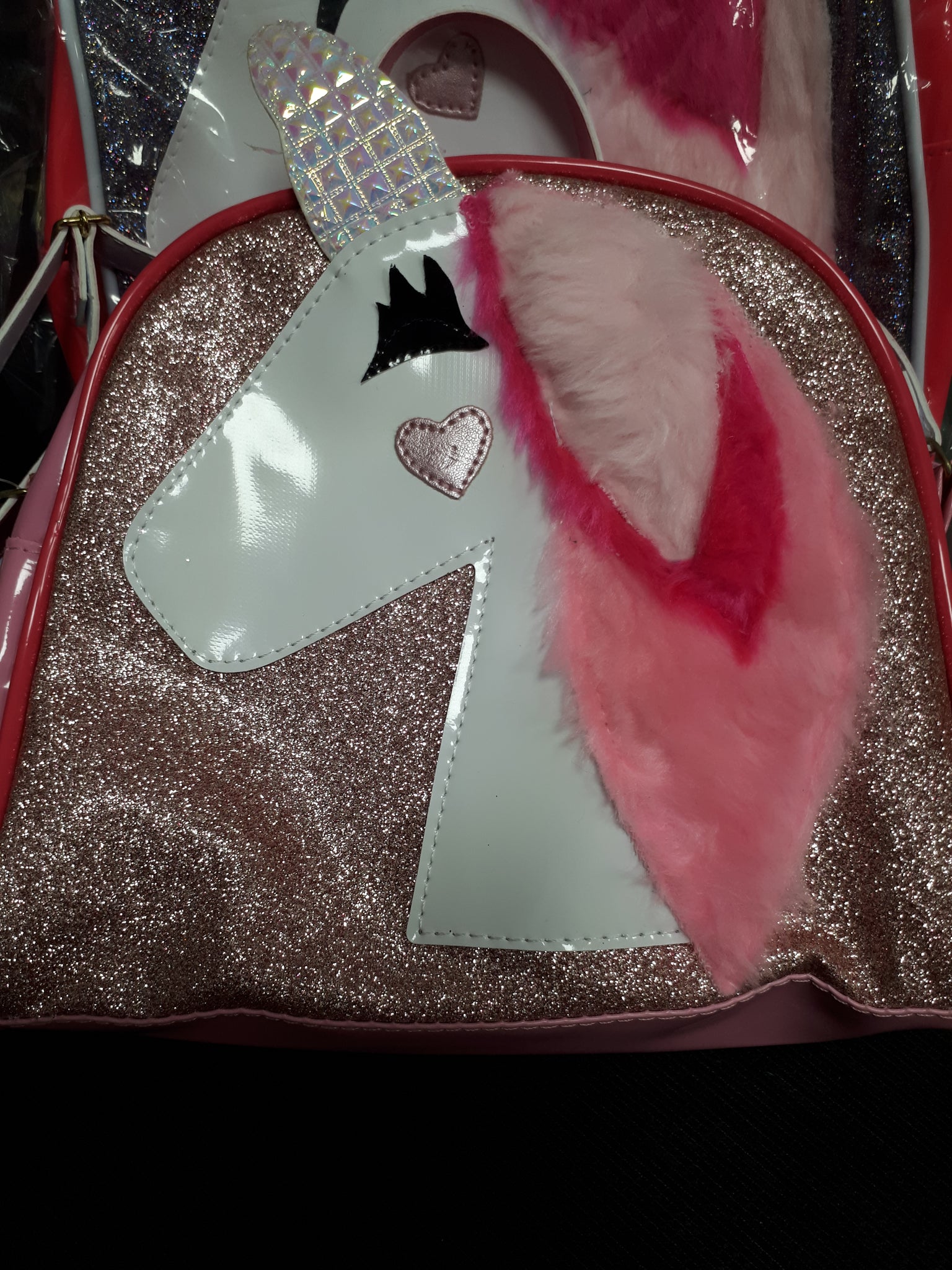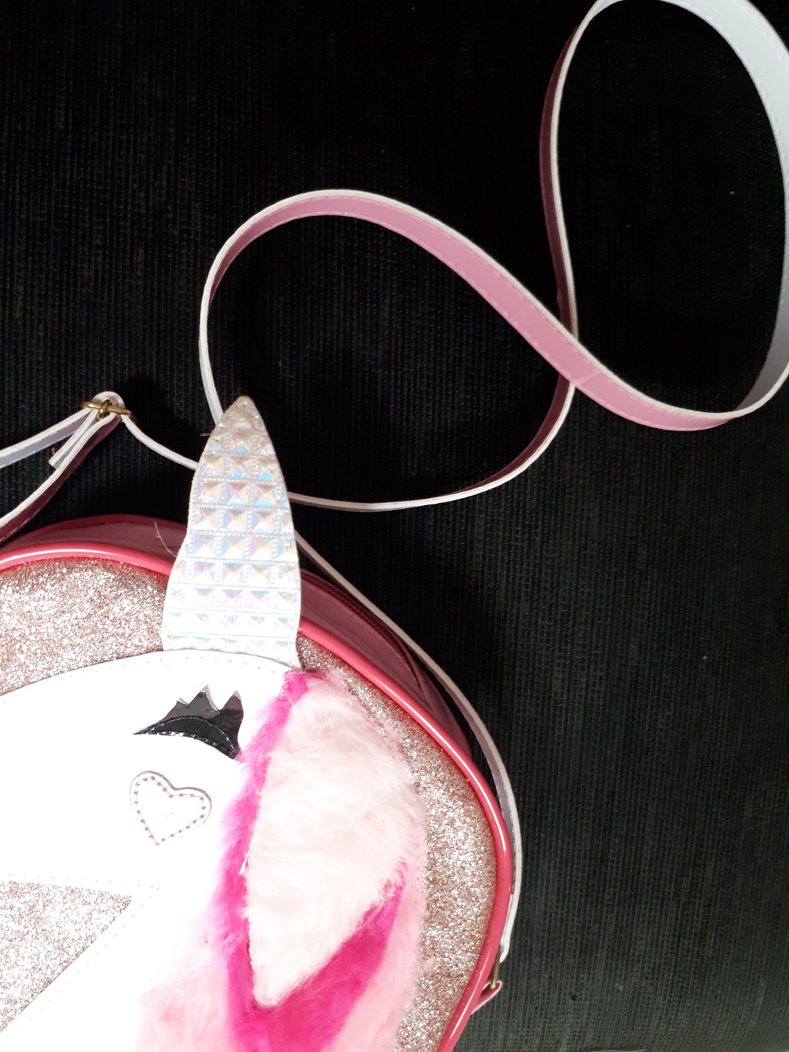 Bolsa de ombro unicórnio confeccionada em material sintético com forro têxtil. fechamento de zíper. alça regulável. material: externo: 100% sintético, interno: 100% poliuretano. imagem meramente ilustrativa.