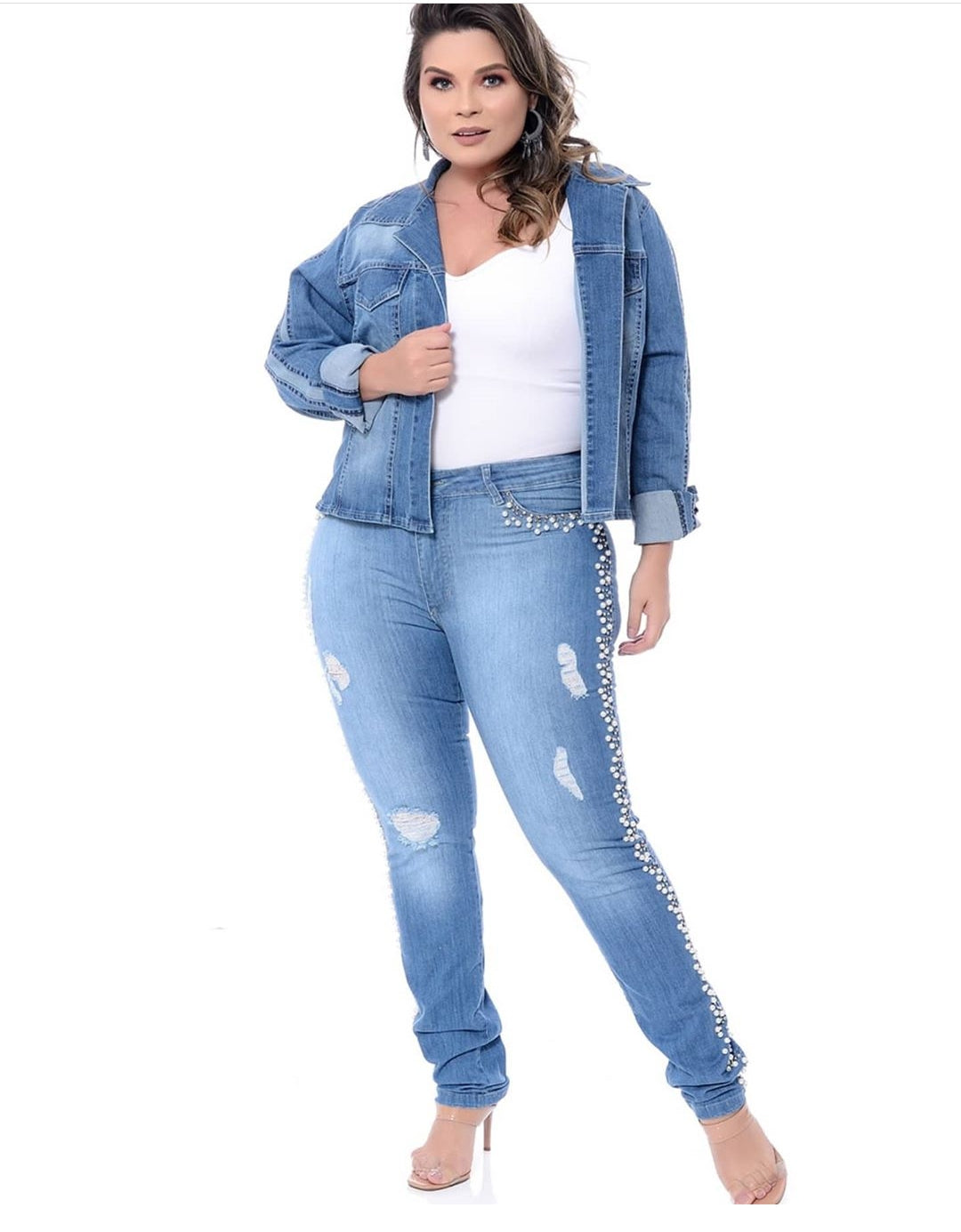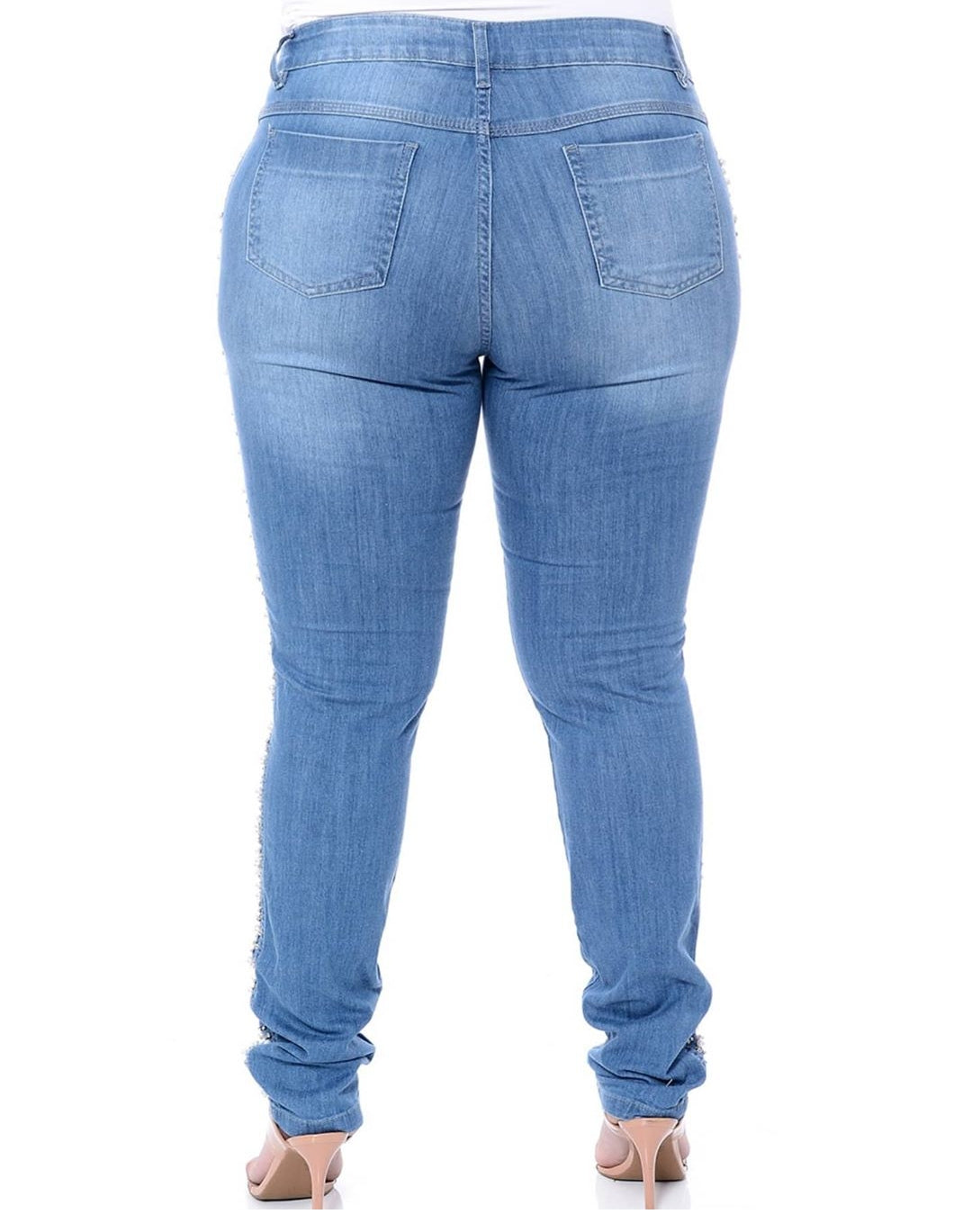 Calça jeans 100%algodão borrada com perola nas laterais e customizada na tonalidade estonada, super moderna e confortável.  Jeans de excelente qualidade.  Disponível dos tamanhos 44.ao 56