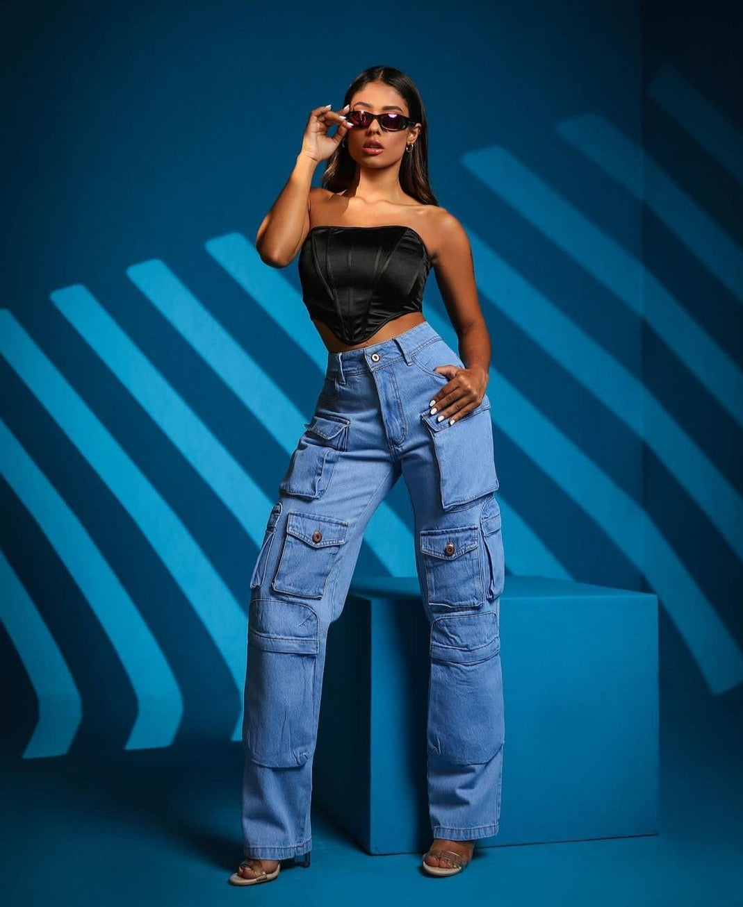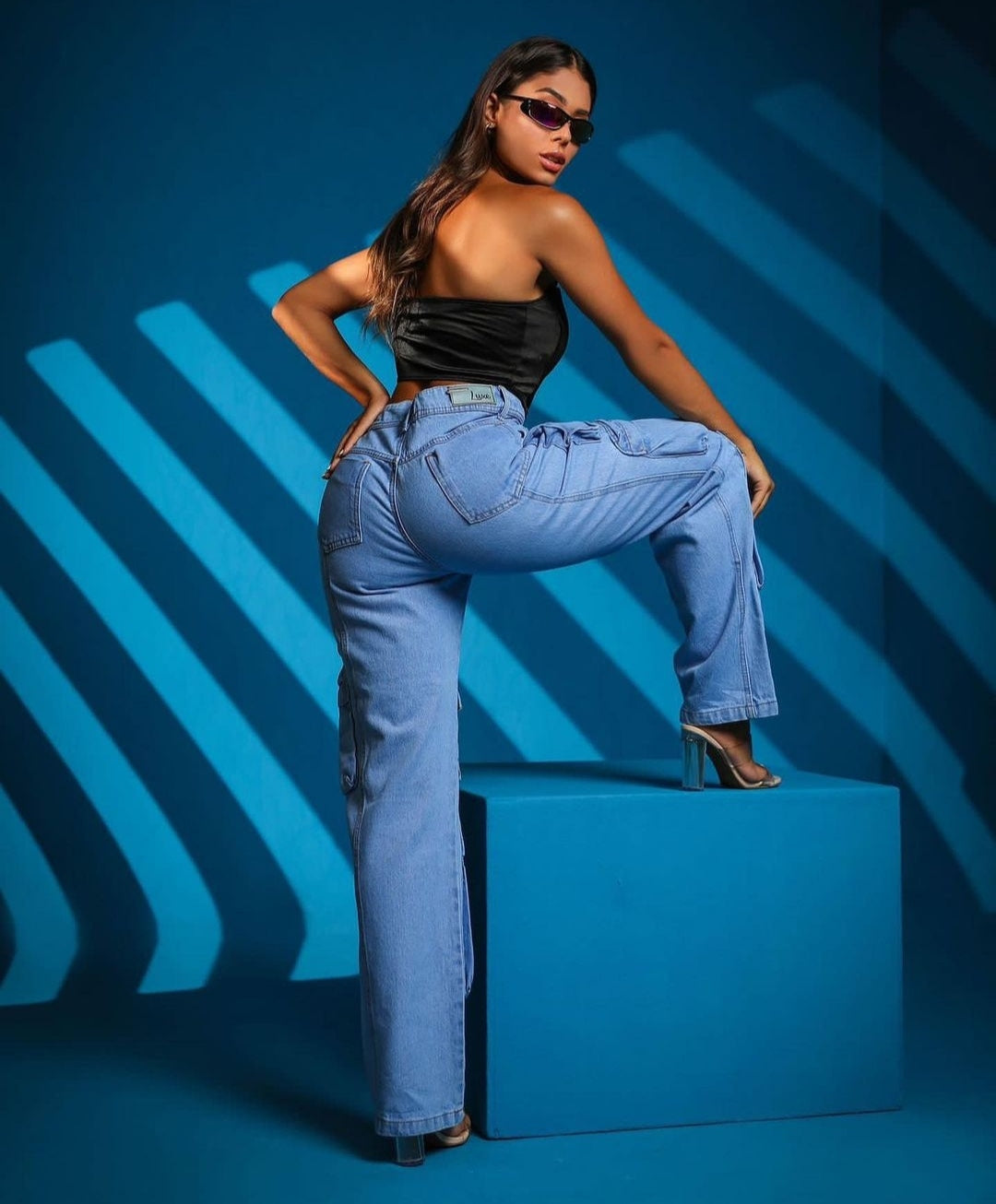 Calça em jeans sem lycra 100% algodão (forma tamanho normal) veste bem , caimento leve não marca , com bolos laterias , modelo wide leg com lavagem