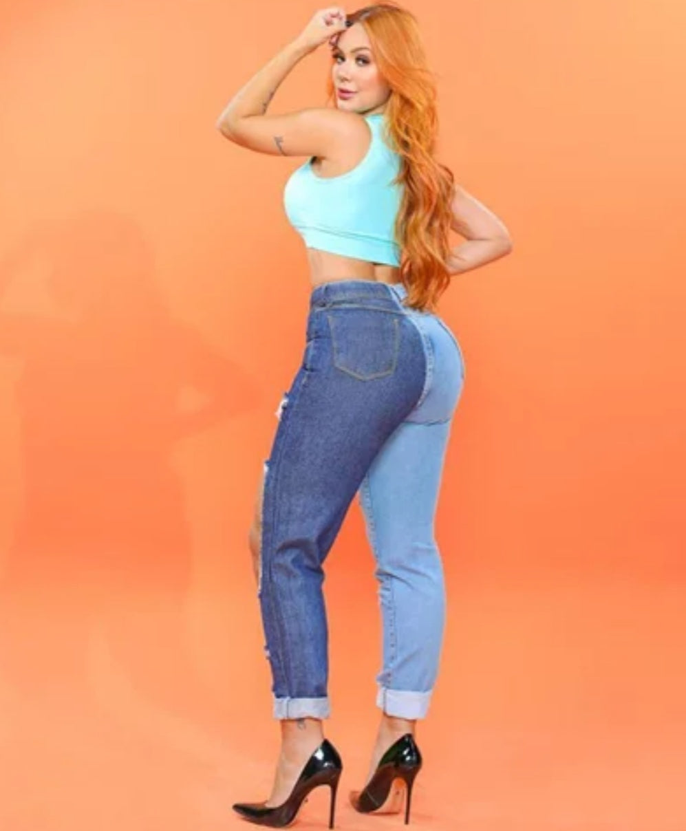 Calça jeans sem elastano 100% algodão tecido que não estica com detalhe em abertura frontal, bicolor jeans com duas lavagens diferenciada , moderna e bem descolada.
