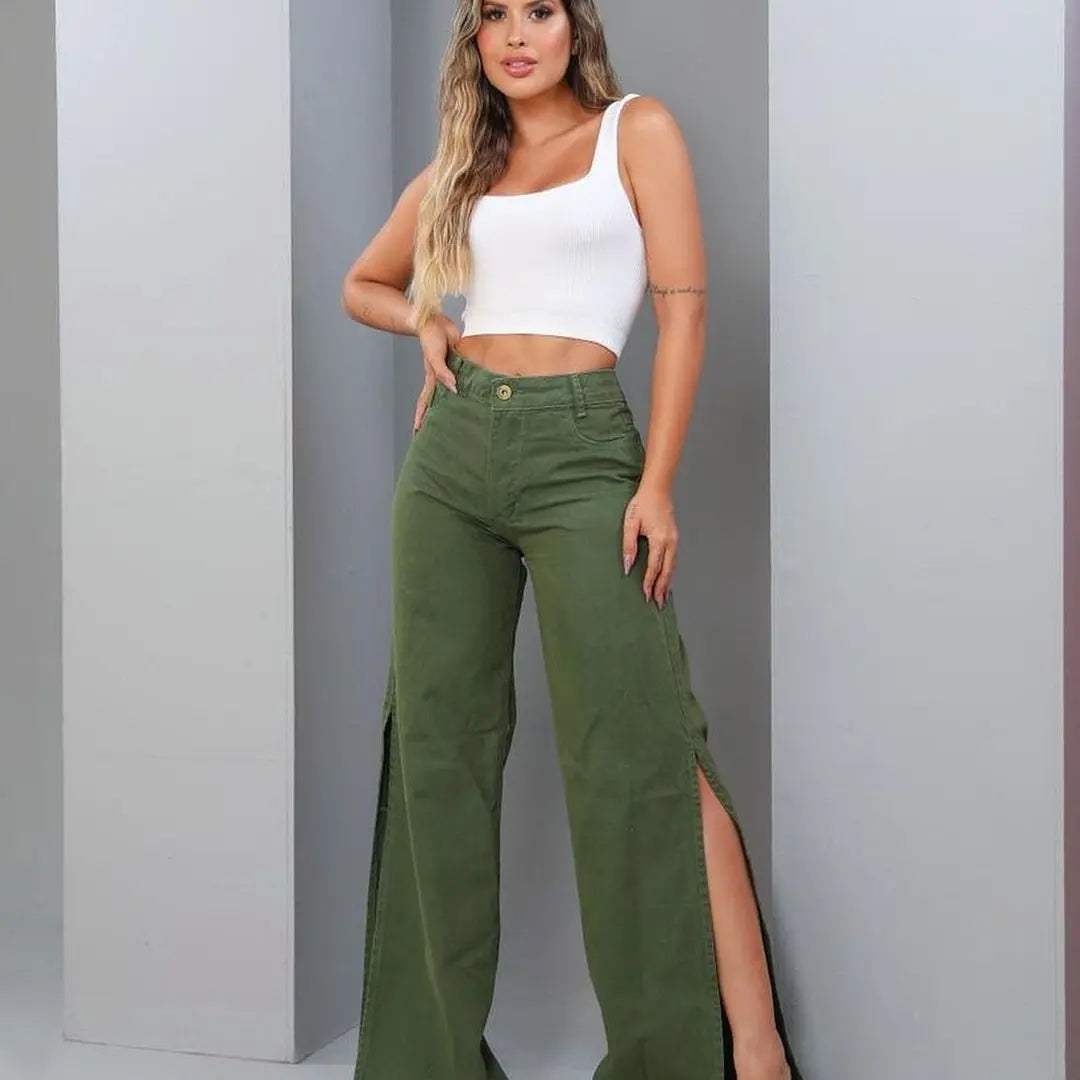 Calça em brim 100%algodao com fendas laterais , modelo moon , estilo luxo com perfeito acabamento e caimento . Disponível do 36 ao 44 forma normal