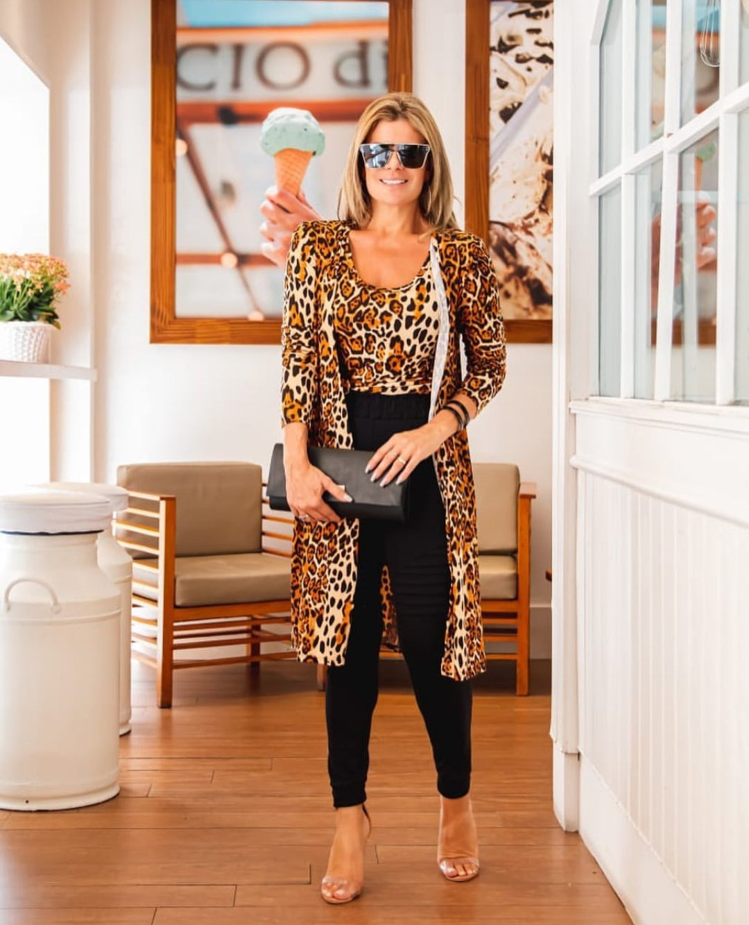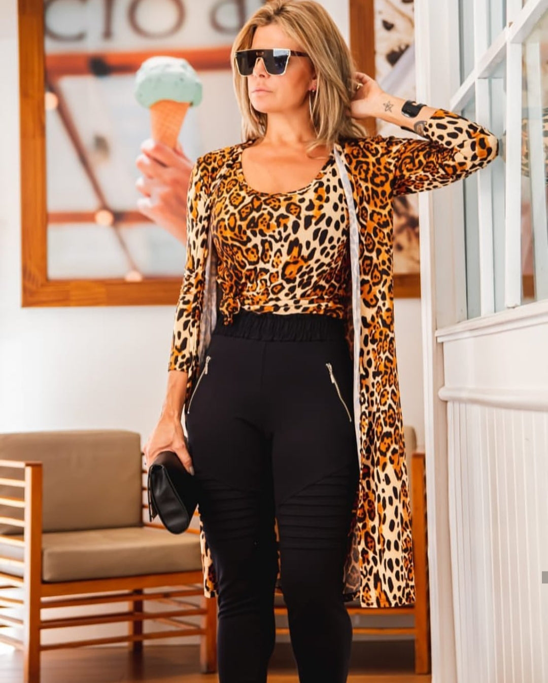 Paixão de todas as estações animal print esse conjunto é Bárbaro veste muito bem tecido elastano blusinha regata mais cardigan