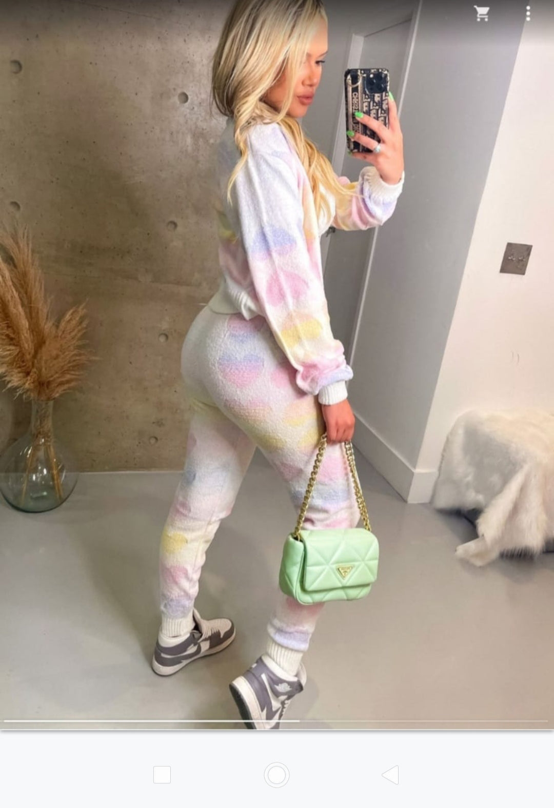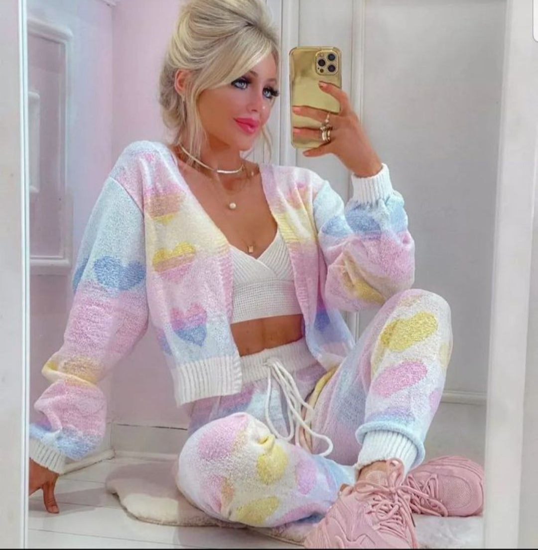 Conjunto em modal com estampa diferenciada e meiga com cores delicadas modelo tiedye composto por jaqueta e calça de alta qualidade. veste muito bem, tecido com elastano