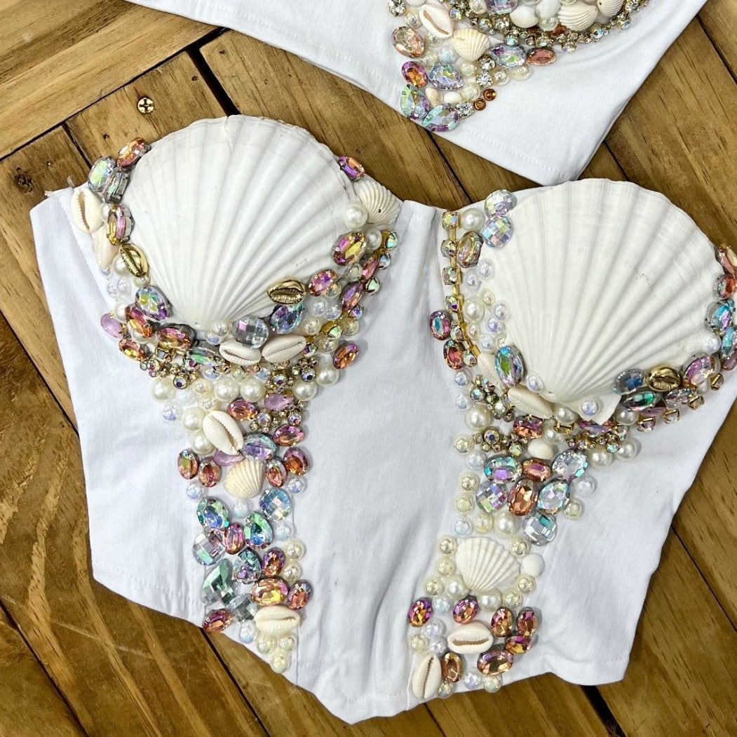 Corpete em tricoline bordadas frontal com pedrarias , peça customizada produzida por pedido com amarração traseira sem lycra tamanho único veste do 36 ao 44