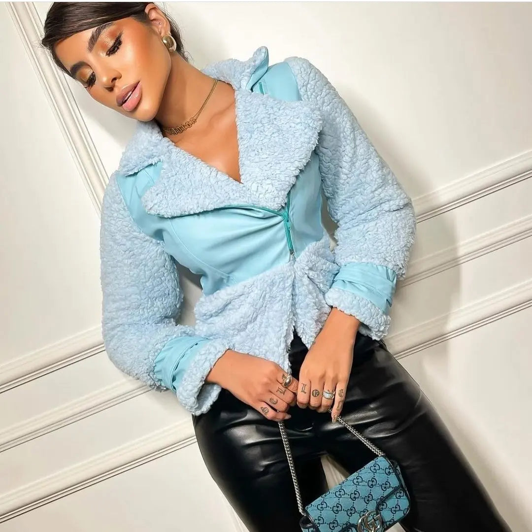 Jaqueta em pelúcia+couro sintético com feixo em zíper frontal , golão TB em pelúcia  e detalhes na manga de couro sintético com regulagem. Veste  do 36 ao 40.