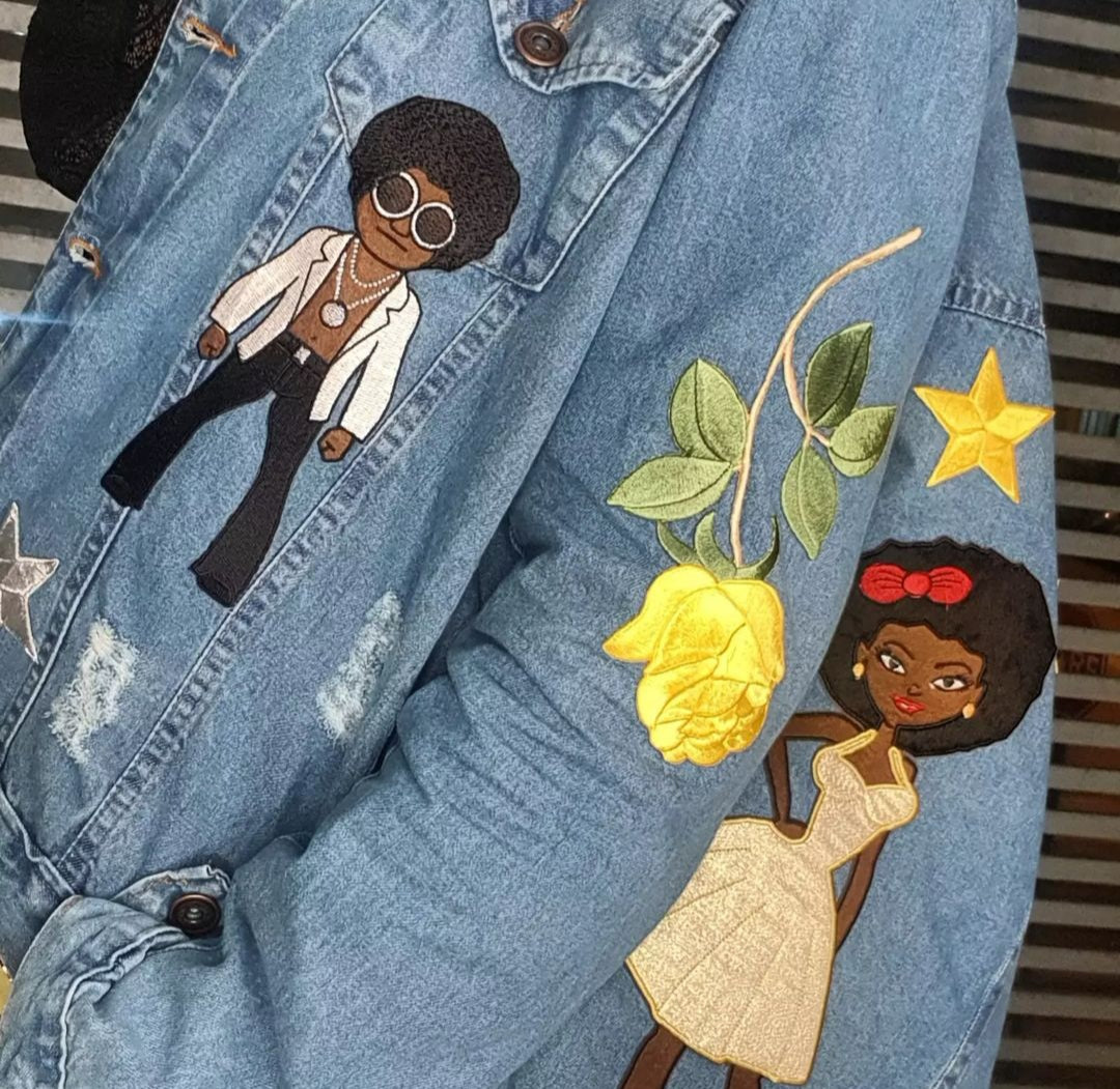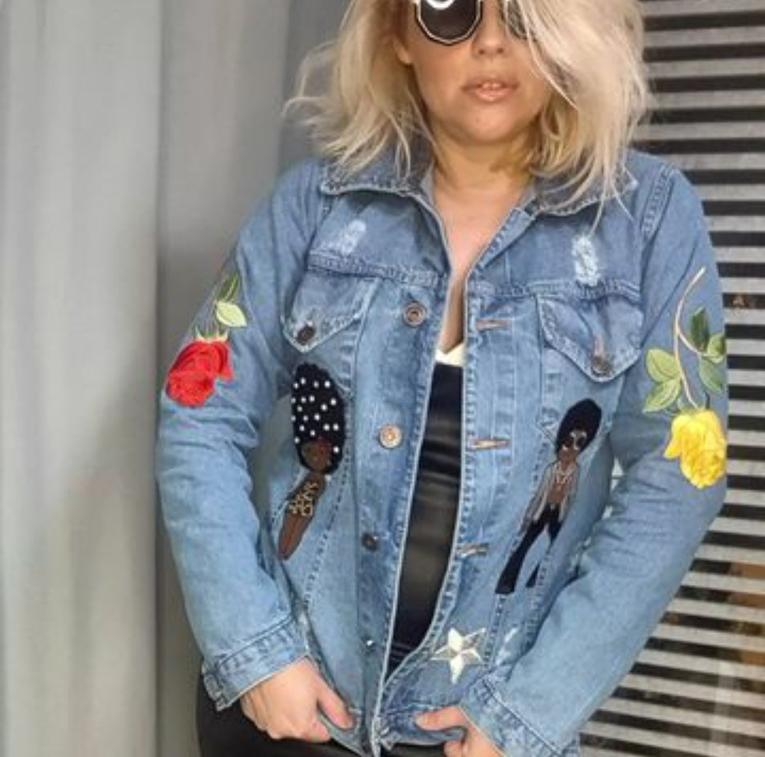 Maxi jaqueta em jeans 100% algodão sem lycra, com customizaçoes diferenciada 3d, , jeans com lavagem clara , customização frontal e traseira