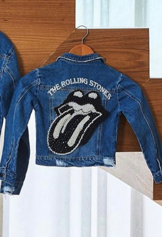 Linda jaqueta jeans bordada no modelo tal filha que faz uma combinação perfeita com a mamãe.  Bordada em perolas brancas e pretas super estilo. Disponível para crianças até 6 anos