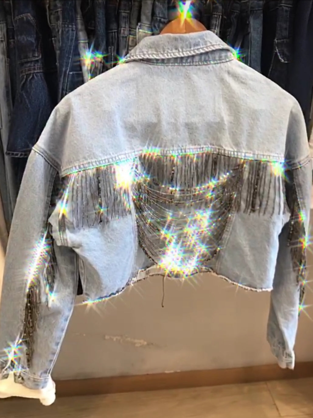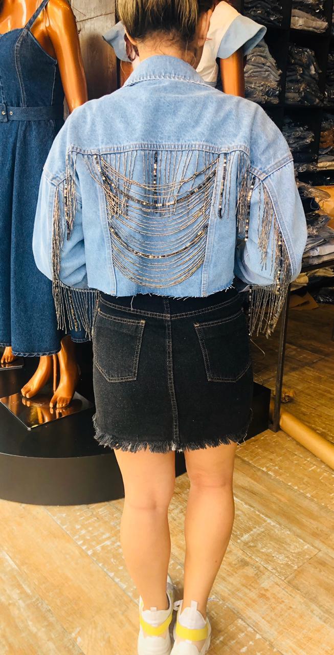 Jaqueta super estilosa customizada toda trabalhada em correntes