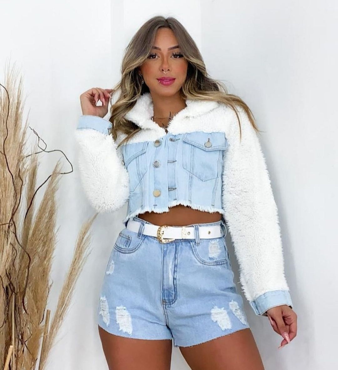 Jaqueta em jeans 100%algodão não estica Frontal , manga e traseiro  pelúcia carneiro . Fofinho , estiloso . Disponível do 36 ao 44