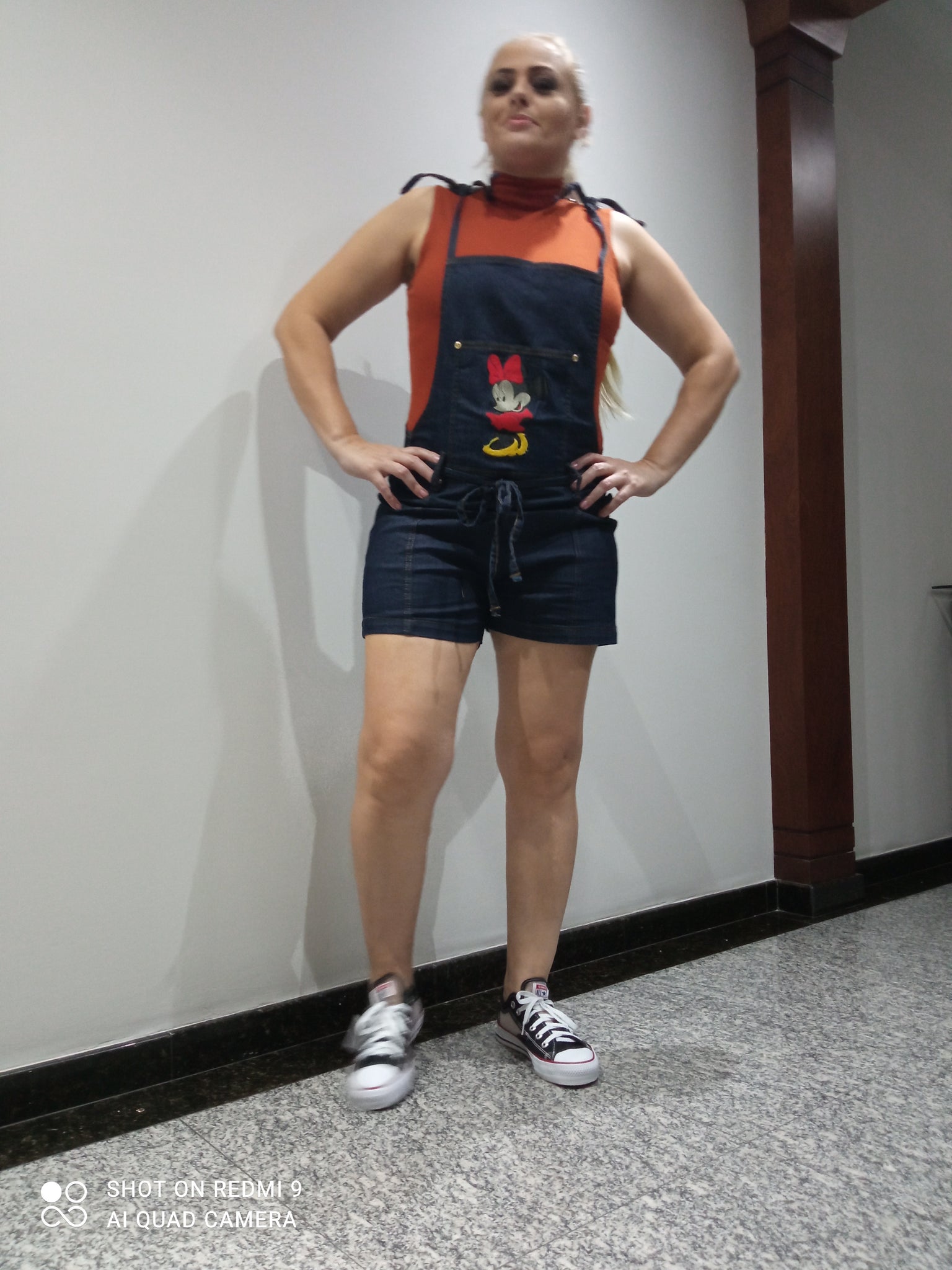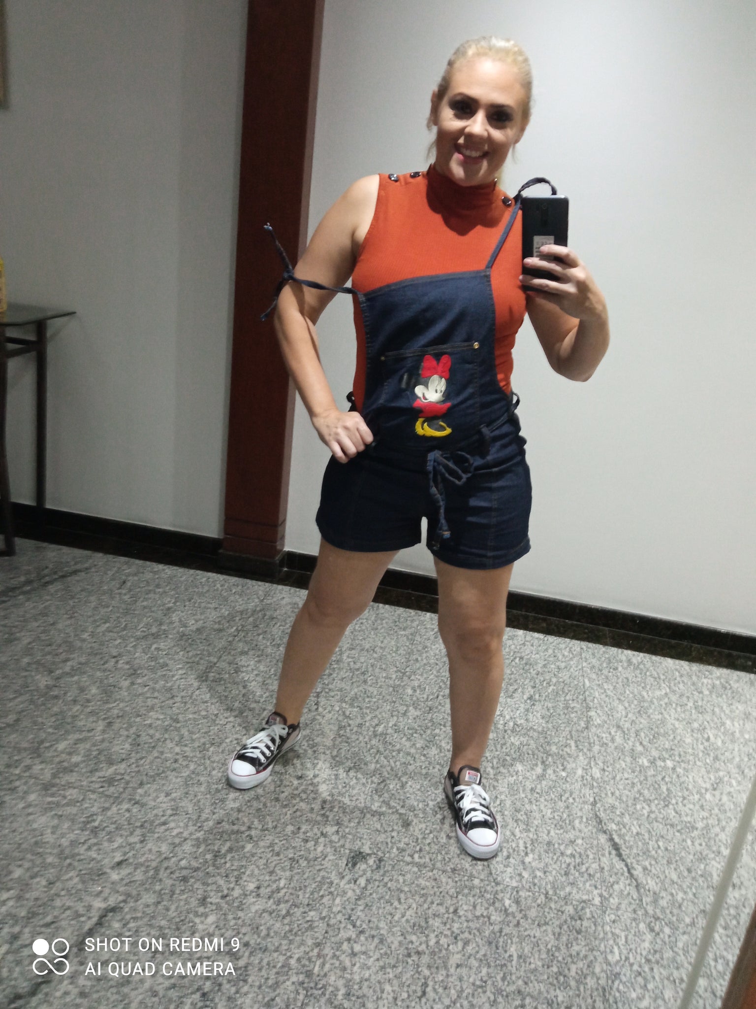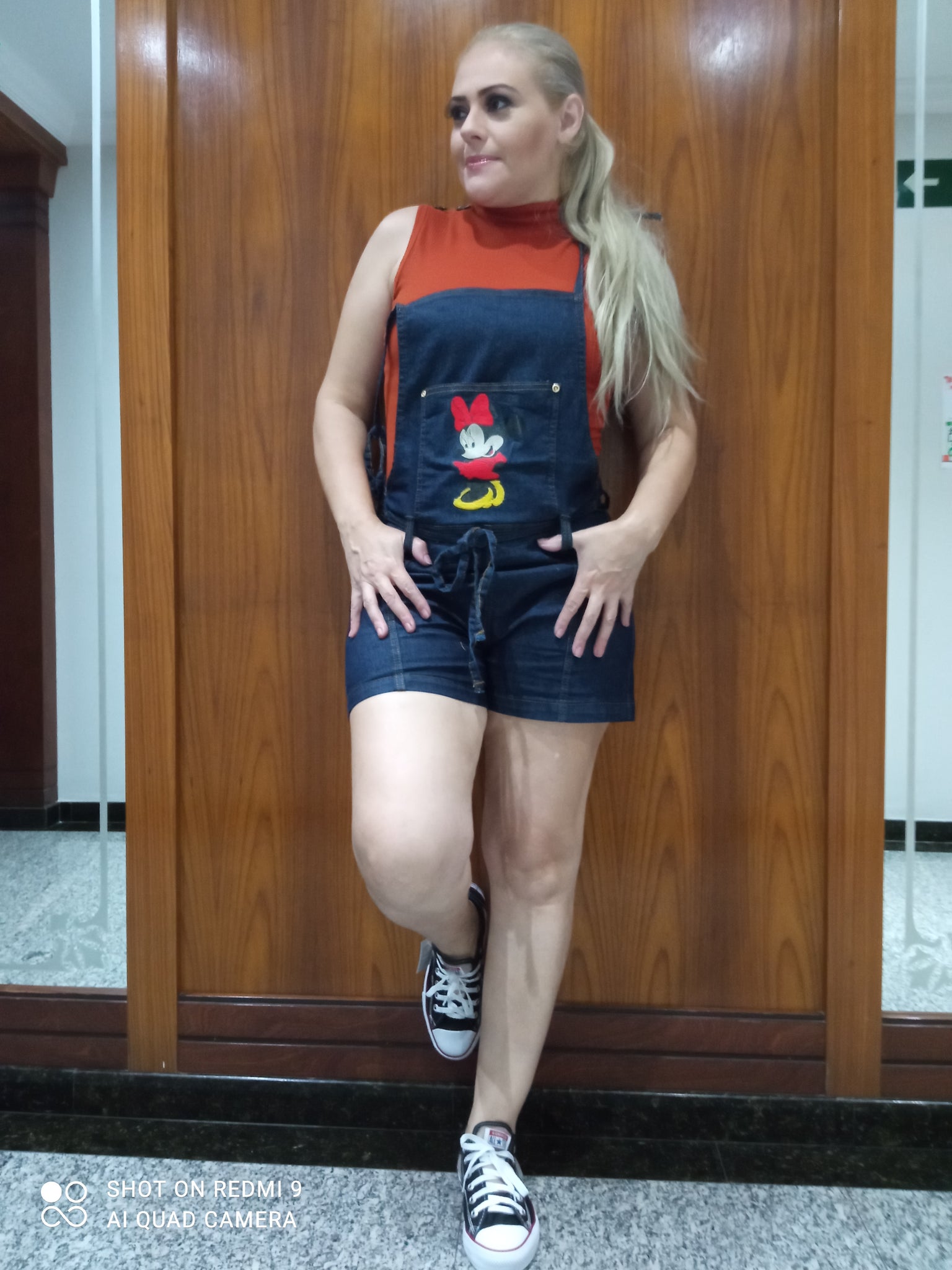 Jardineira em jeans com bastante elastano estica bem modelo alcinha com amarração superior e continuo para amarração na cintura, customização em veludo dos personagens mais Amados.