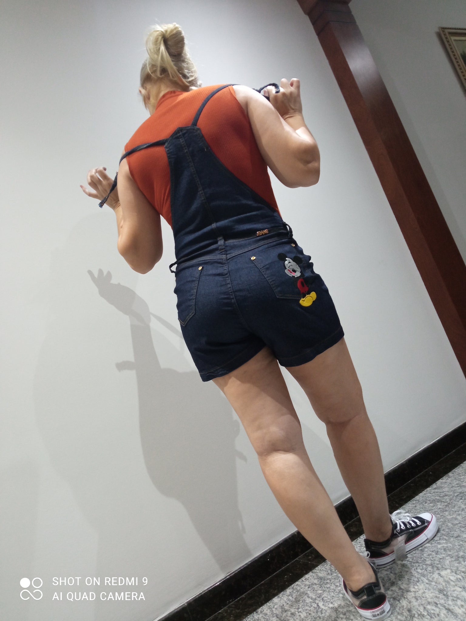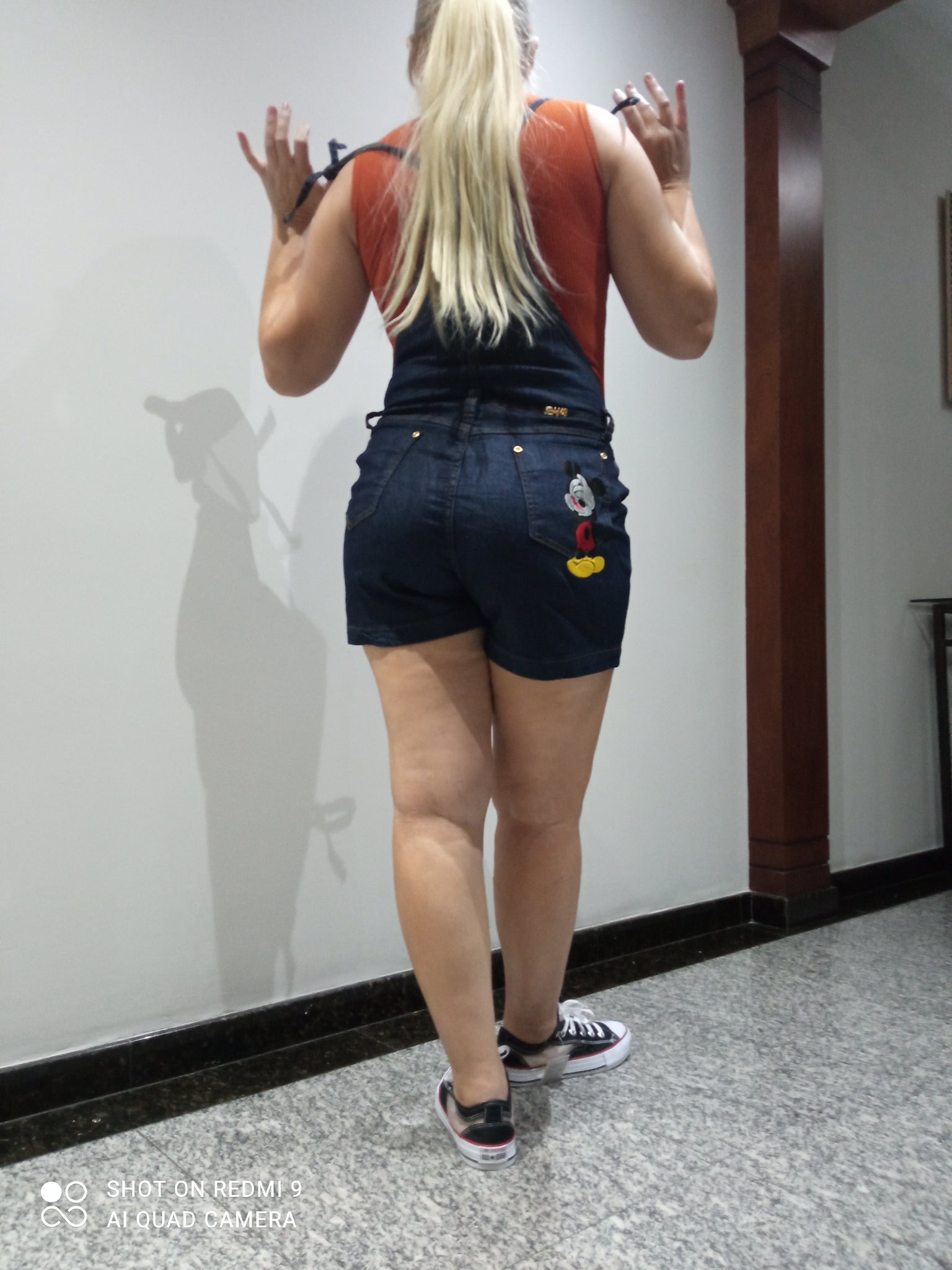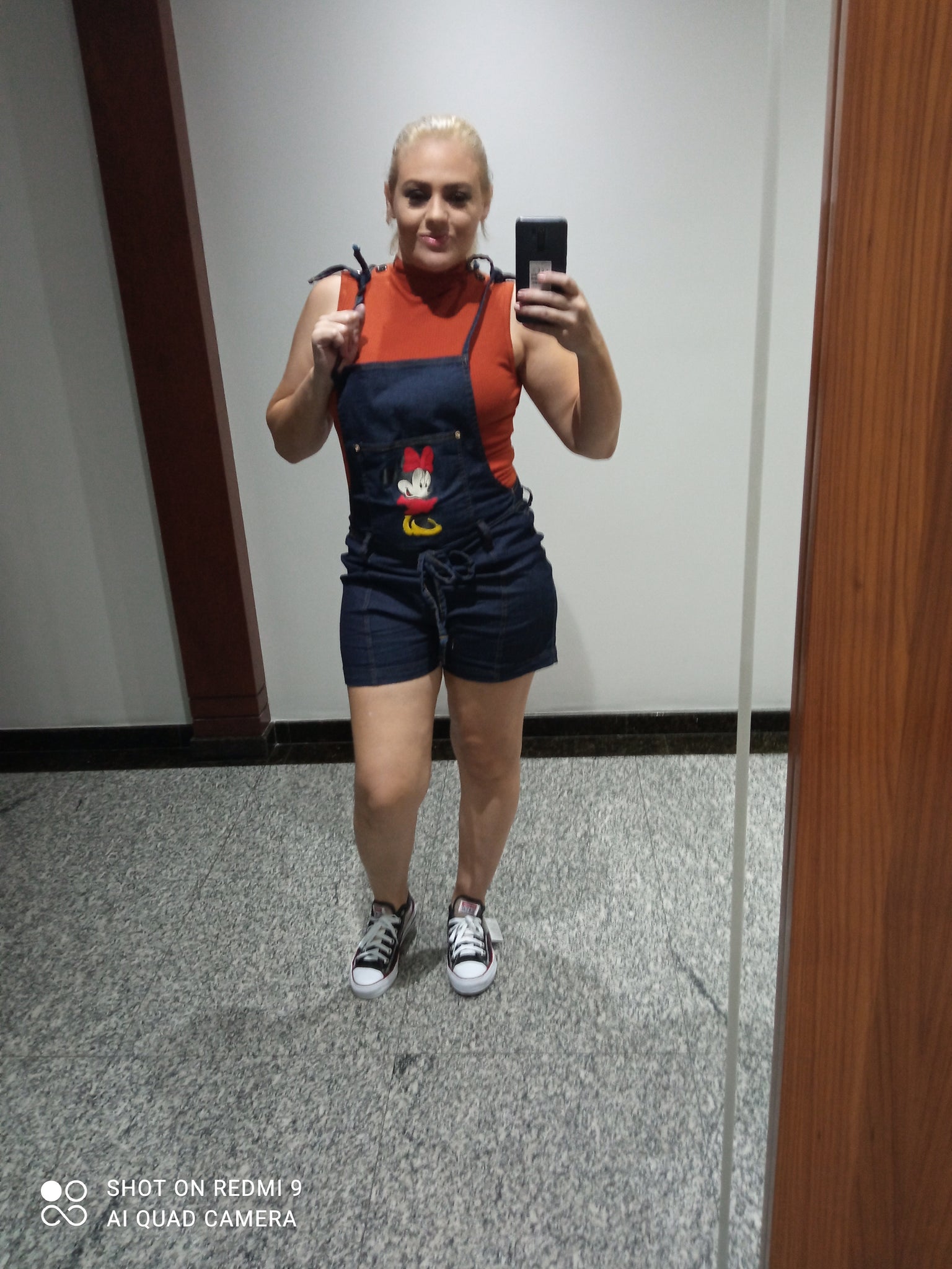 Jardineira em jeans com bastante elastano estica bem modelo alcinha com amarração superior e continuo para amarração na cintura, customização em veludo dos personagens mais Amados.
