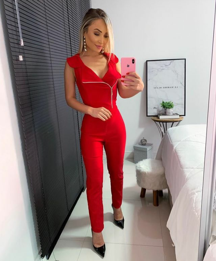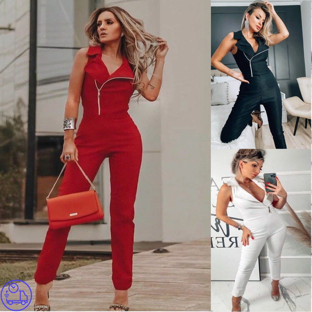 Macacão em bengaline tecido com elastano estica bem alem de modelar o corpo, confortável e estiloso com bolsos laterais e traseiro. Veste do 36 ao 44