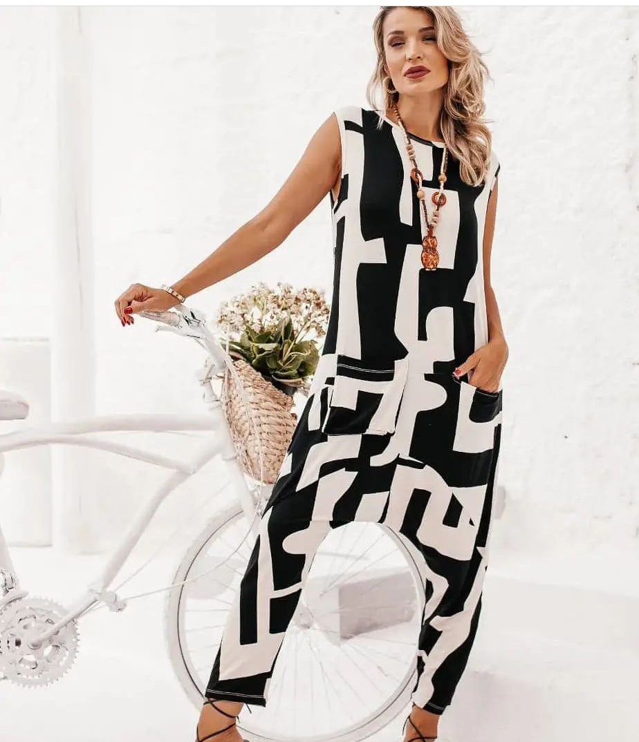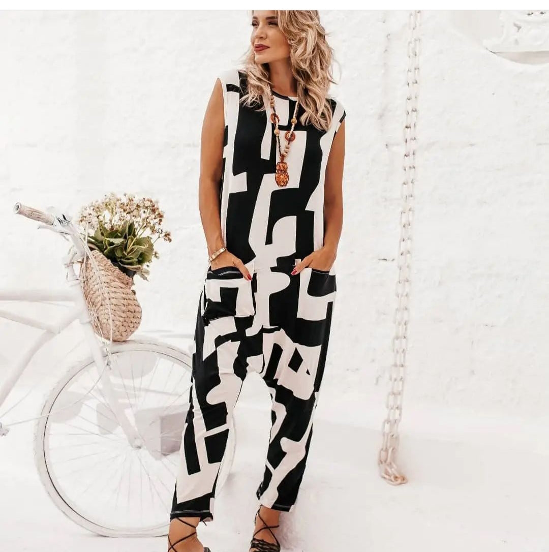 Macacão em viscose estampa digitalizada assimétrica , modelo boyfriend com bolsos laterias , tecido leve e confortavel, não marca e não e transparente