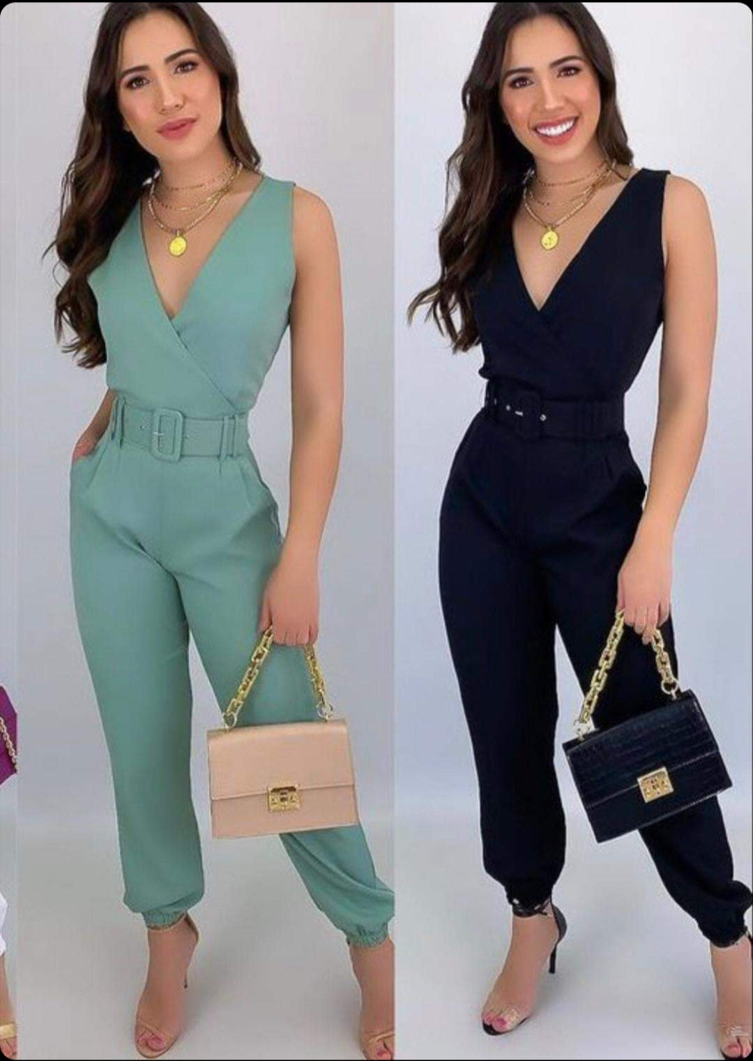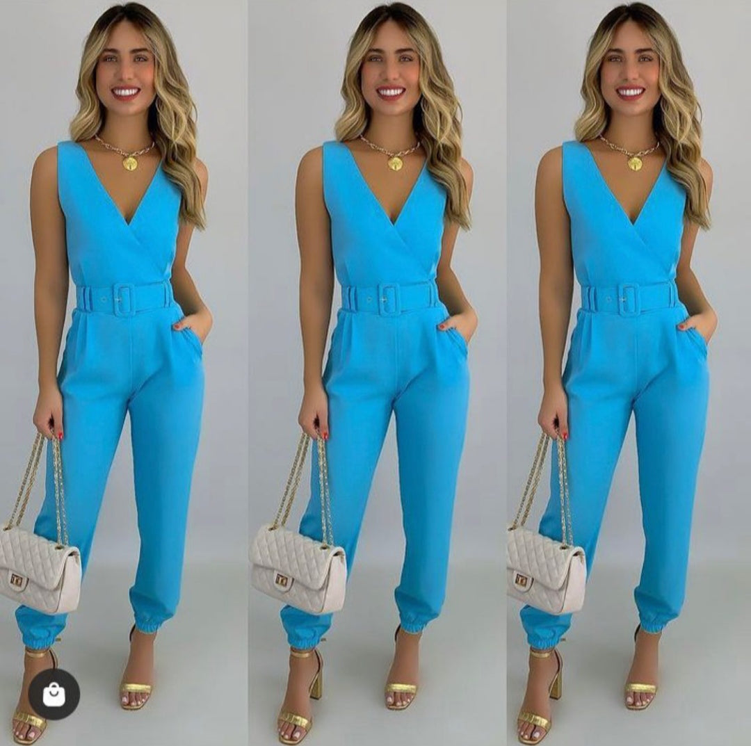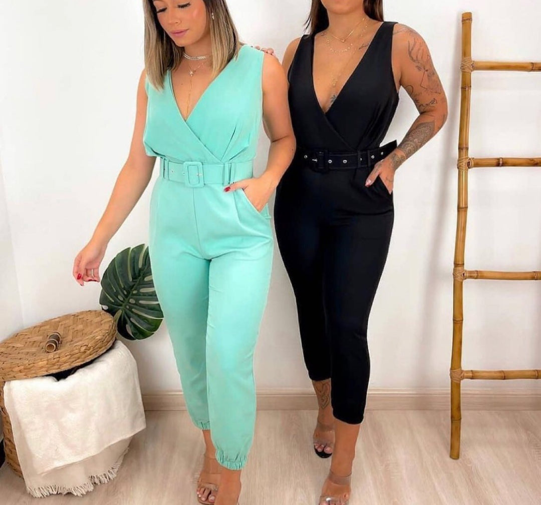 Macacão em viscolinho sem elastano modelo regata larga que permite o uso de sutiã, acompanha cinto forrado no mesmo tecido , barrado com elastico, no estilo joguers