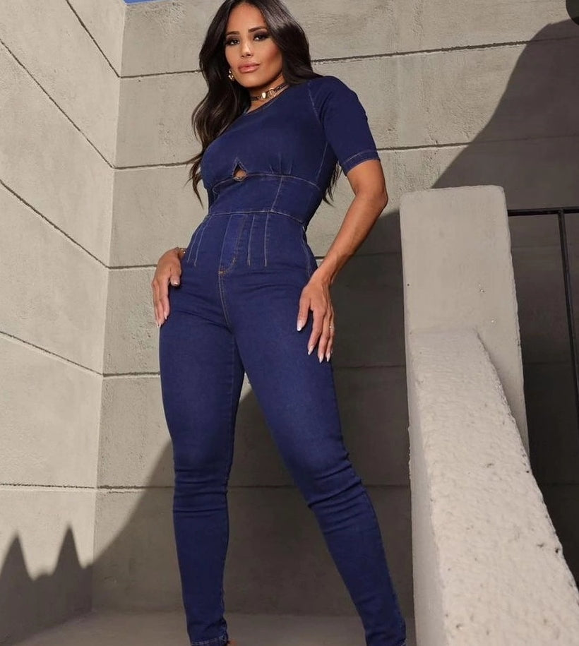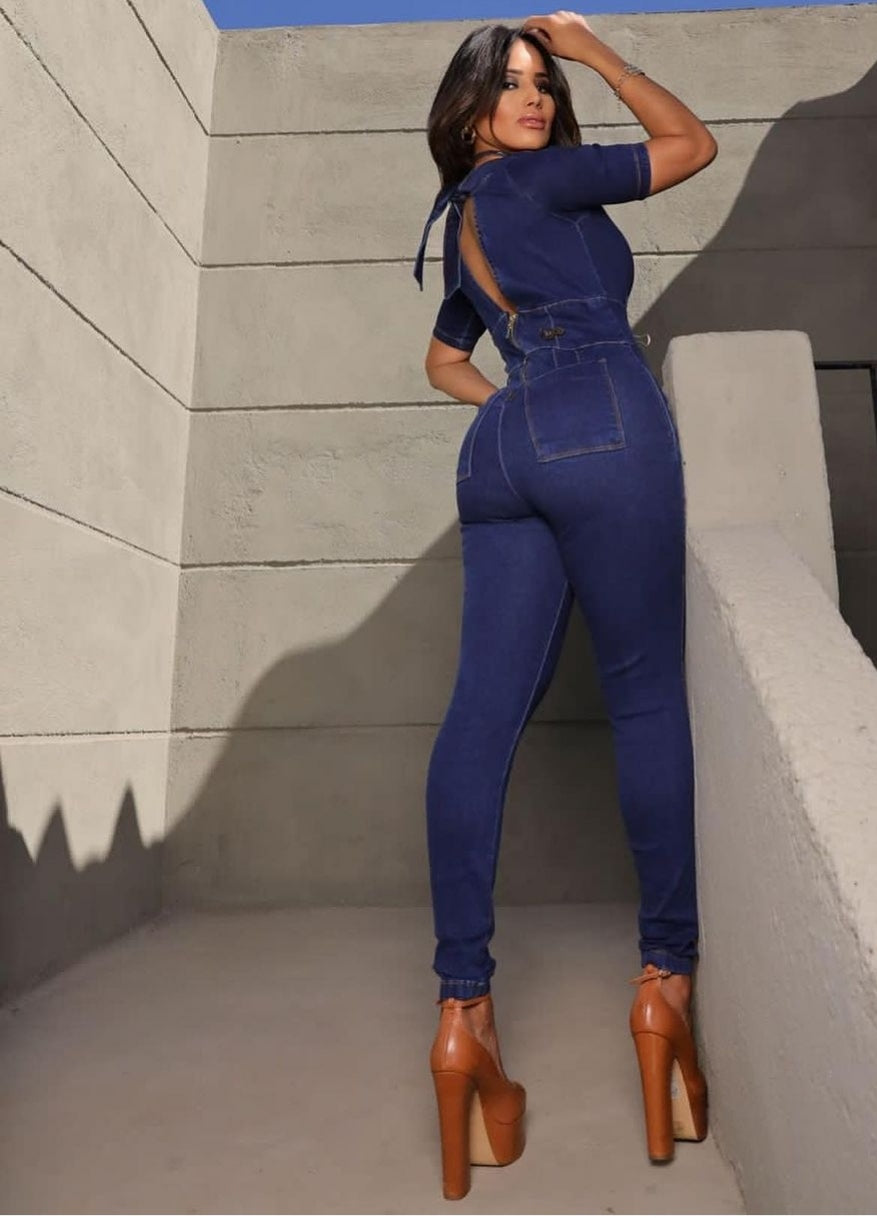 Macacão em jeans com elastano  jeans escuro com manga longa e desconte traseiro com zíper . Disponível do 36 ao 44.