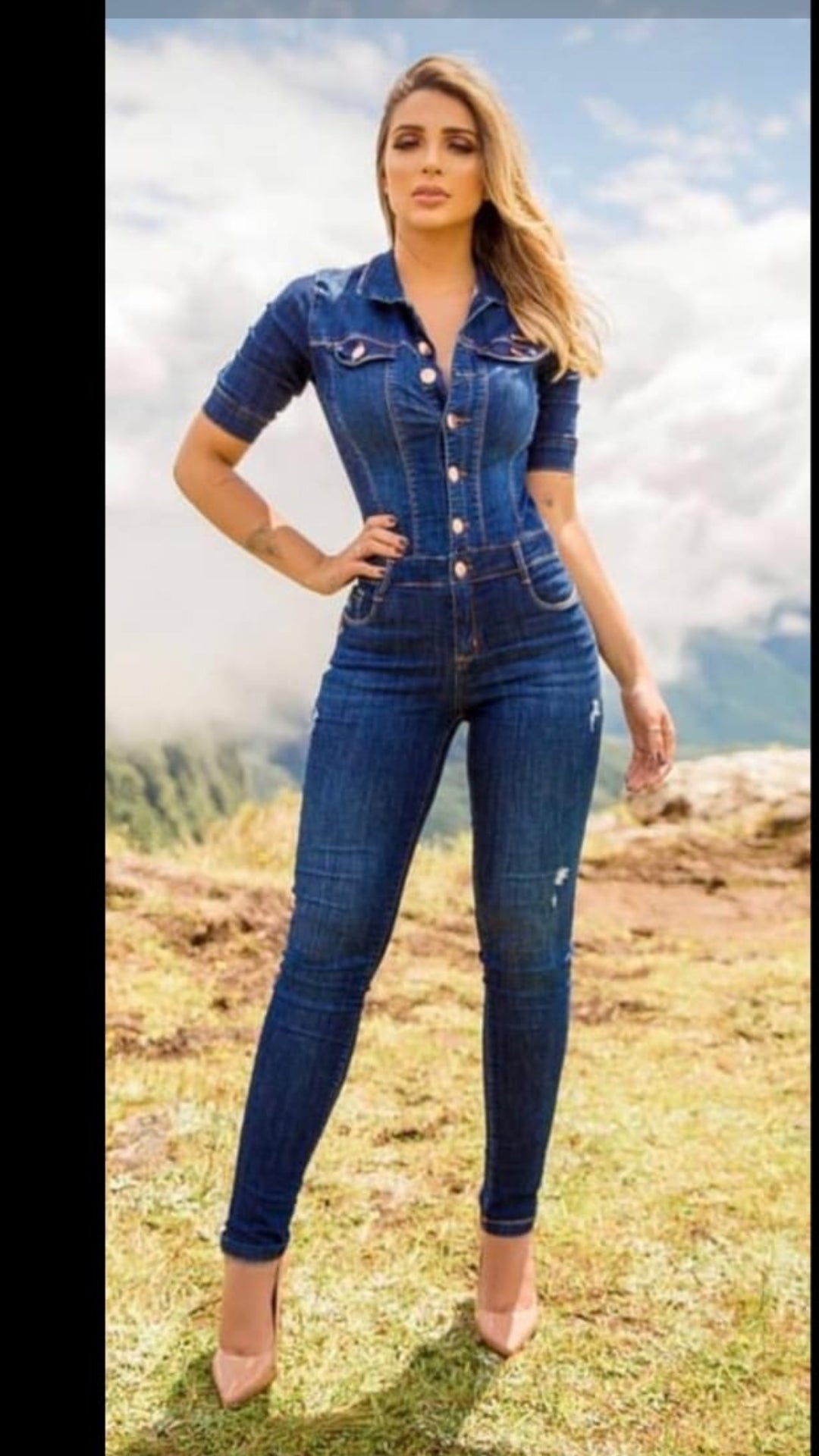 Lindo de macacão jeans manga três quartos botões e ziper frontal na cor ouro velho, bolsos traseiros. Jeans com lycra, veste muito bem além de super confortavel. Um verdadeiro charme. Lavagens variadas isso pode mudar o tom da peça.
