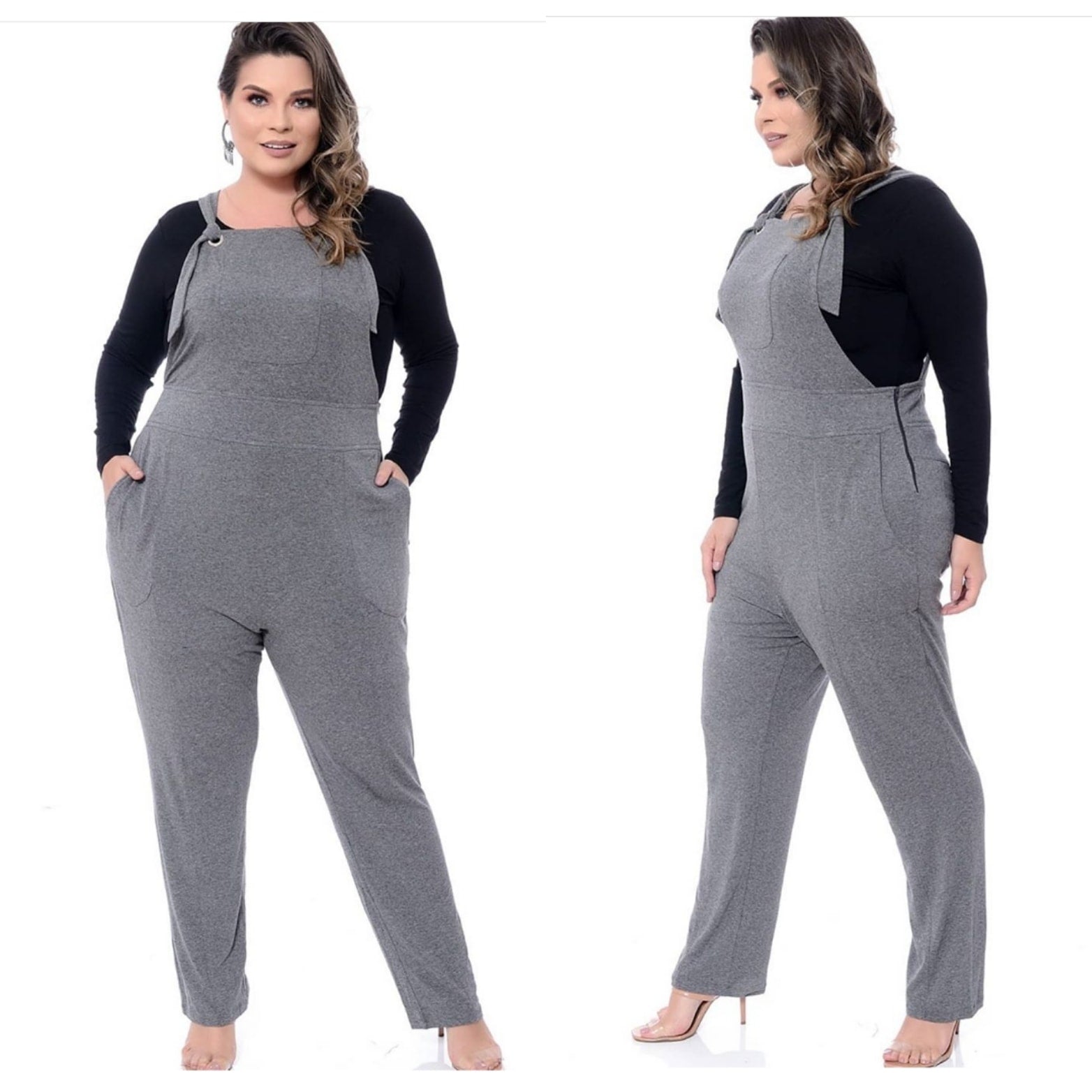 Lindo macacão em malha de excelente qualidade que estica, caimento perfeito com ziper lateral muito charmoso.