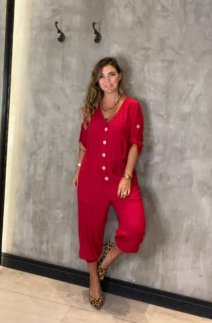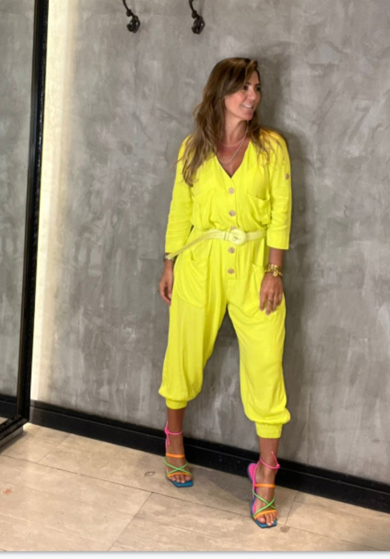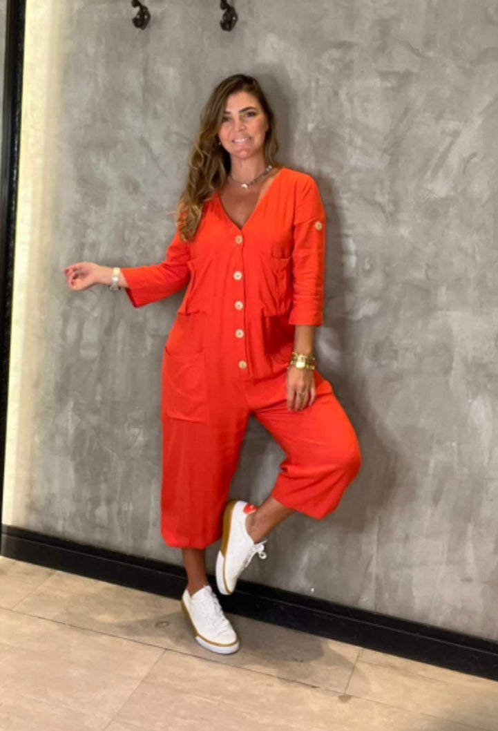 Macacão em linho manhã 3/4 com botão superior para fixação de manga , tecudo de excelente qualidade , boroes de abertura frontal (nao acompanha cinto)