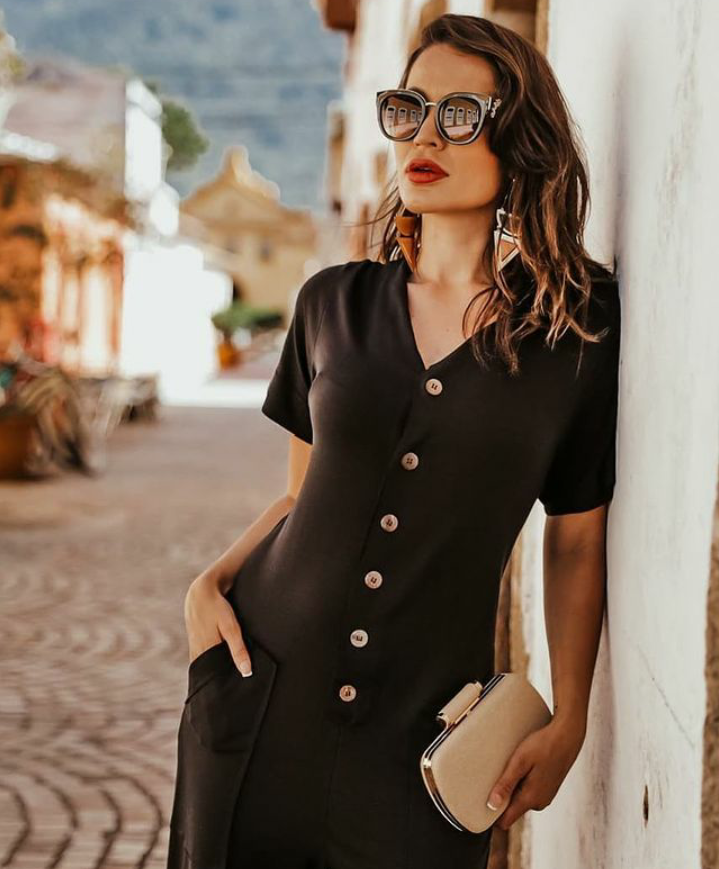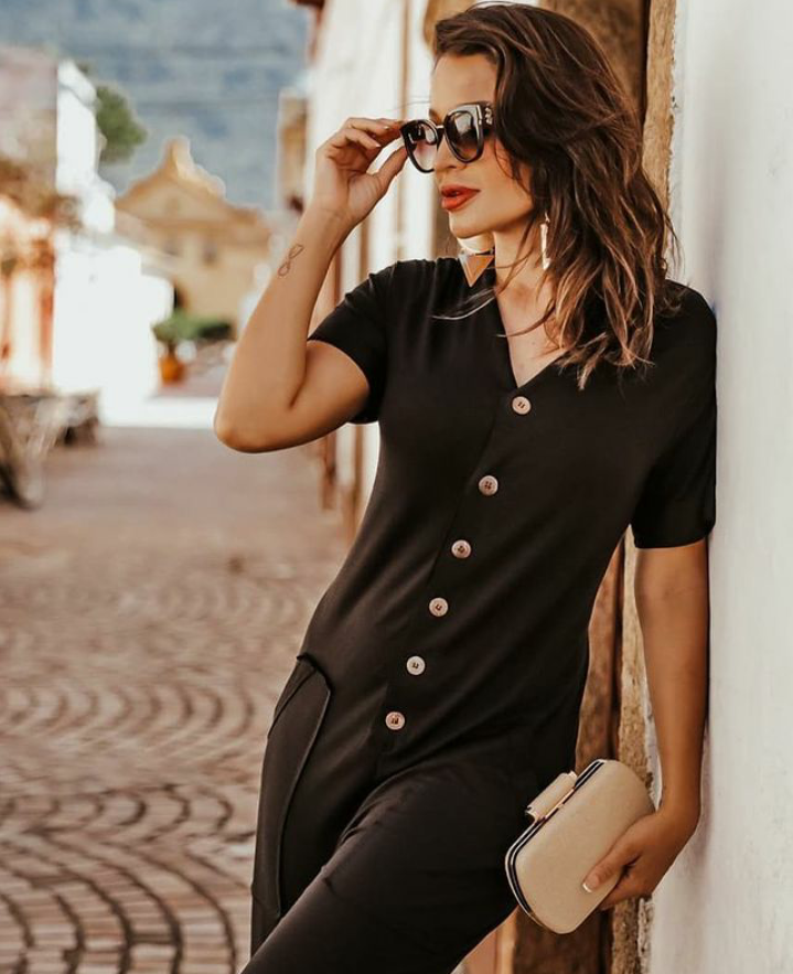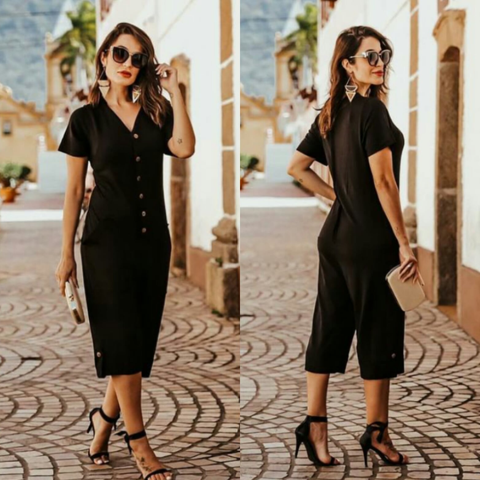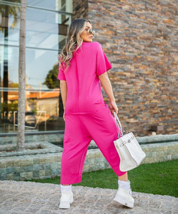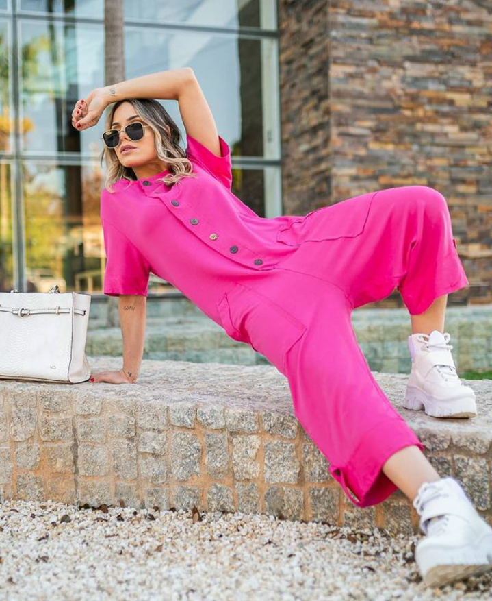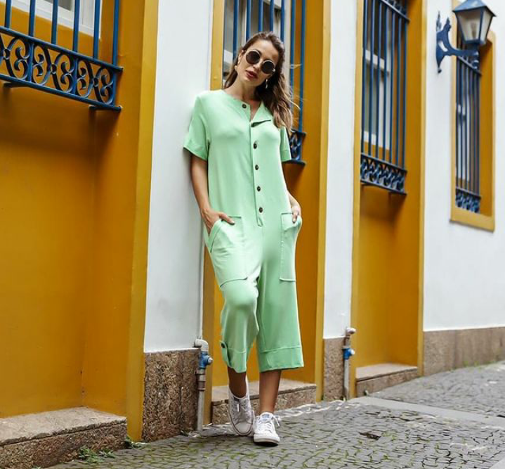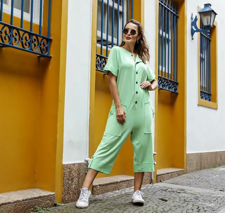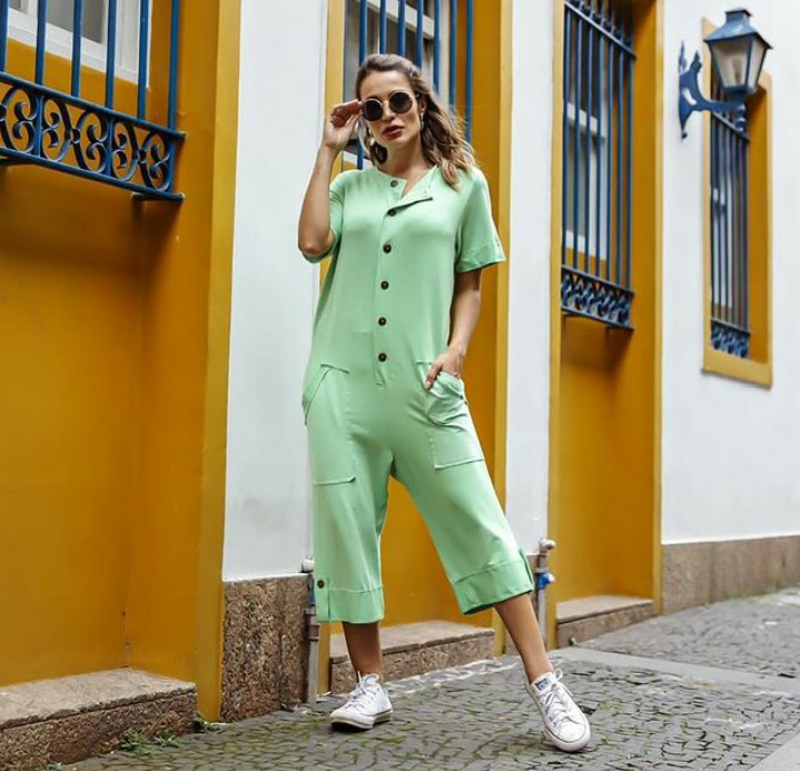 Macacão moletinho em viscose bem soltinho e confortável modelo pantacourt com bolsos laterais e botões frontais . Disponível nas cores preto, rosa e verde. Nos tamanhos P 38/40, M 42 e G 44/46