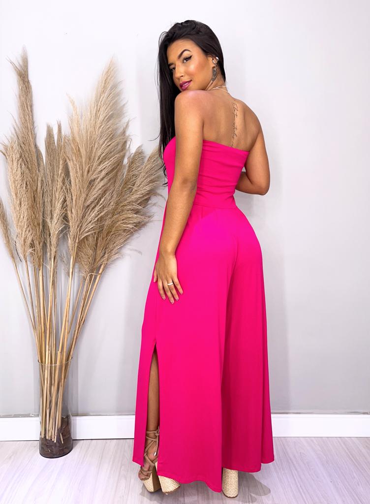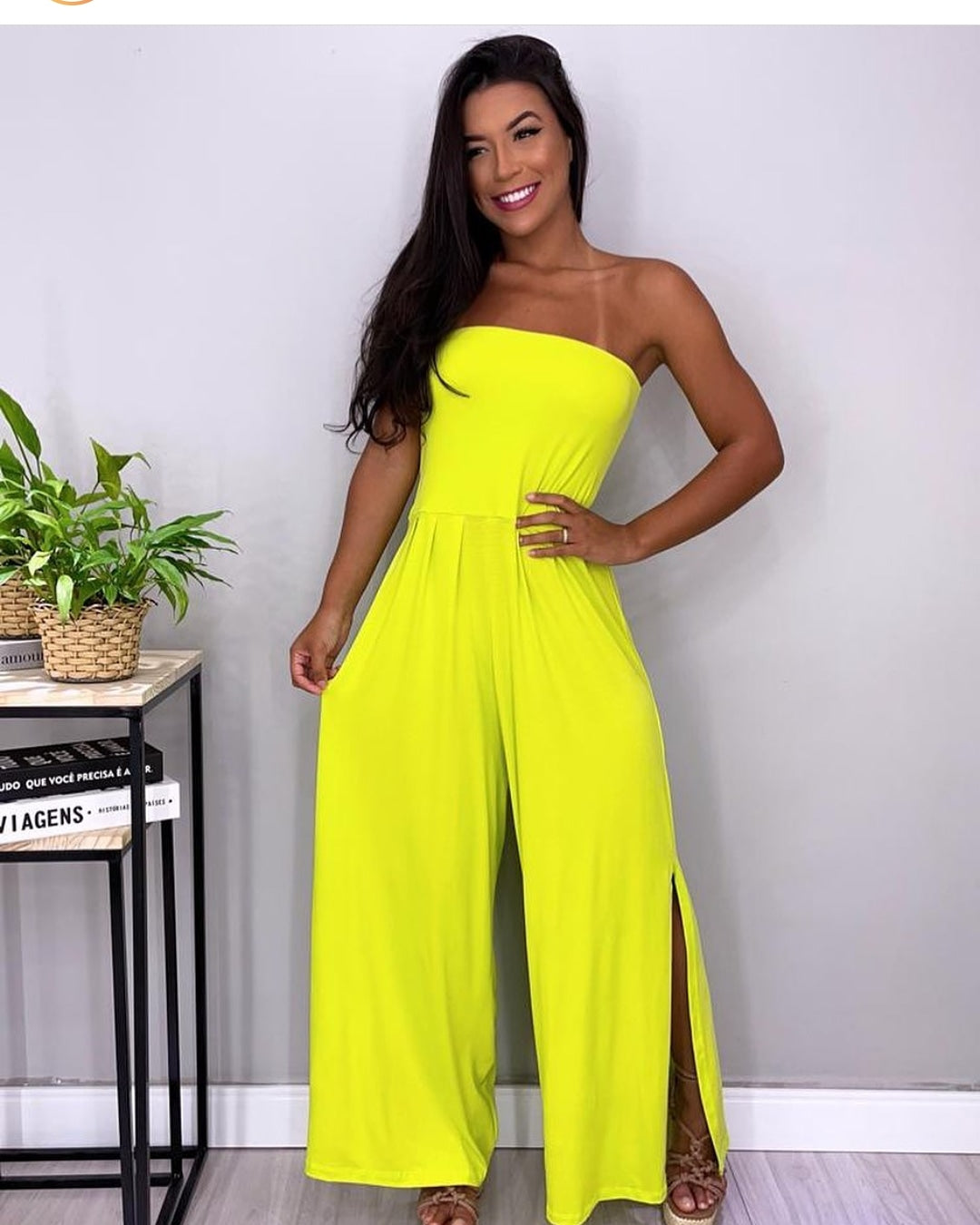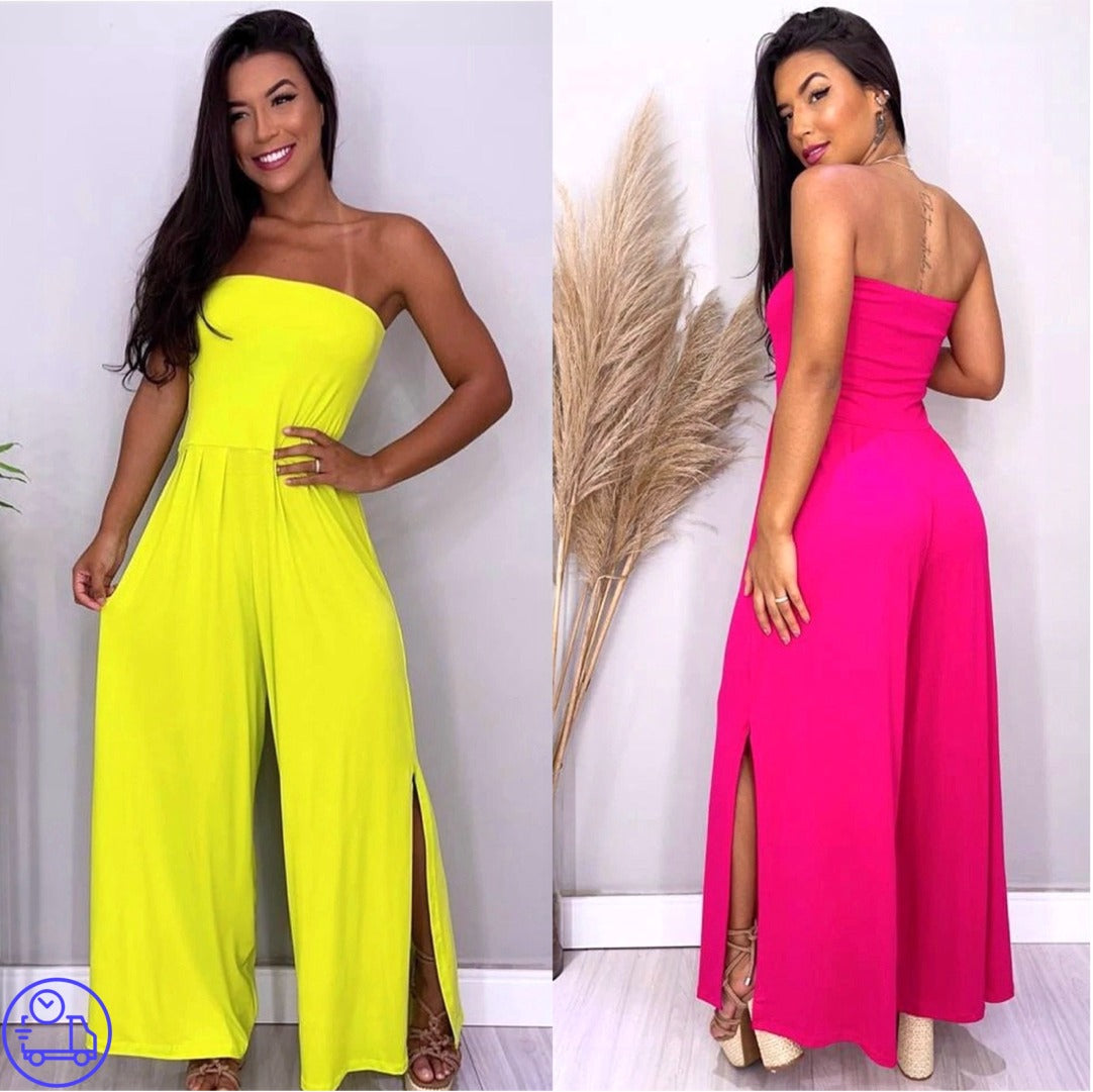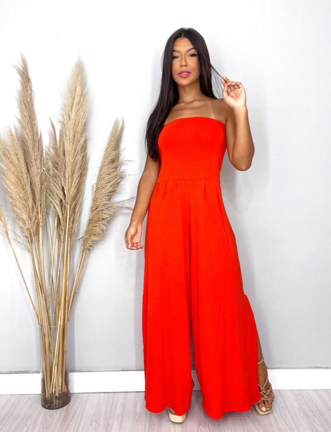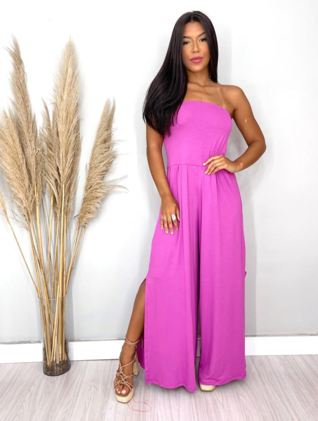 Macacão em malha com elastano tomara que caia.com fenda baixa lateral , tecido leve e macio que não tem transparência. Tamanho único veste do 36 ao 48