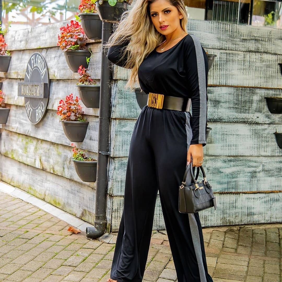 Macacão em tecido Viscolycra com elástico na cintura permitindo um look mais descontraído, veste muito bem do tamanho 36 ao 52.(não acompanha cinto)