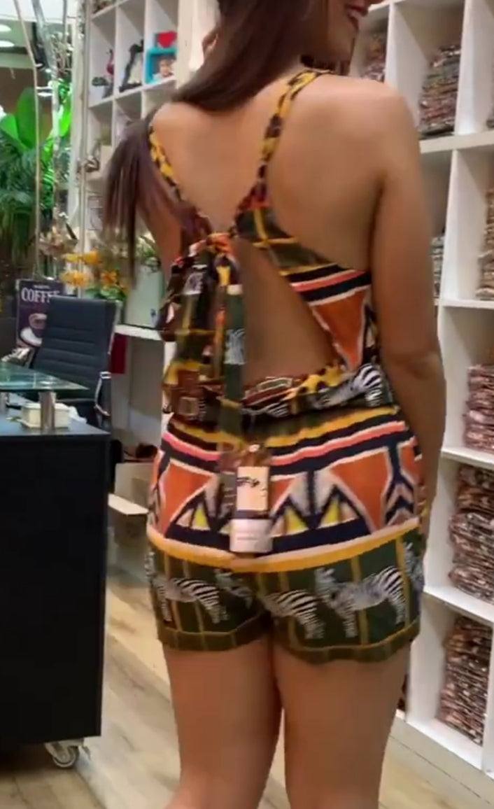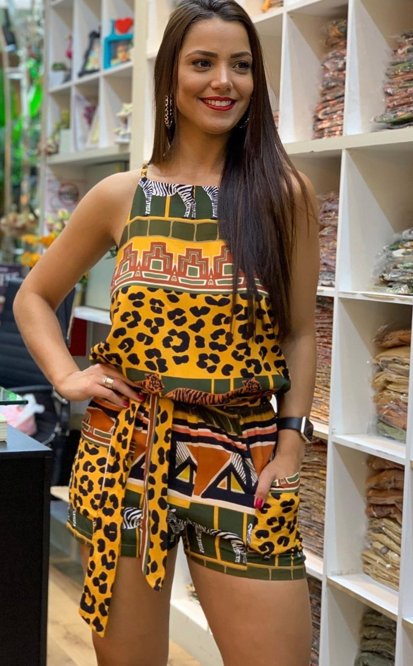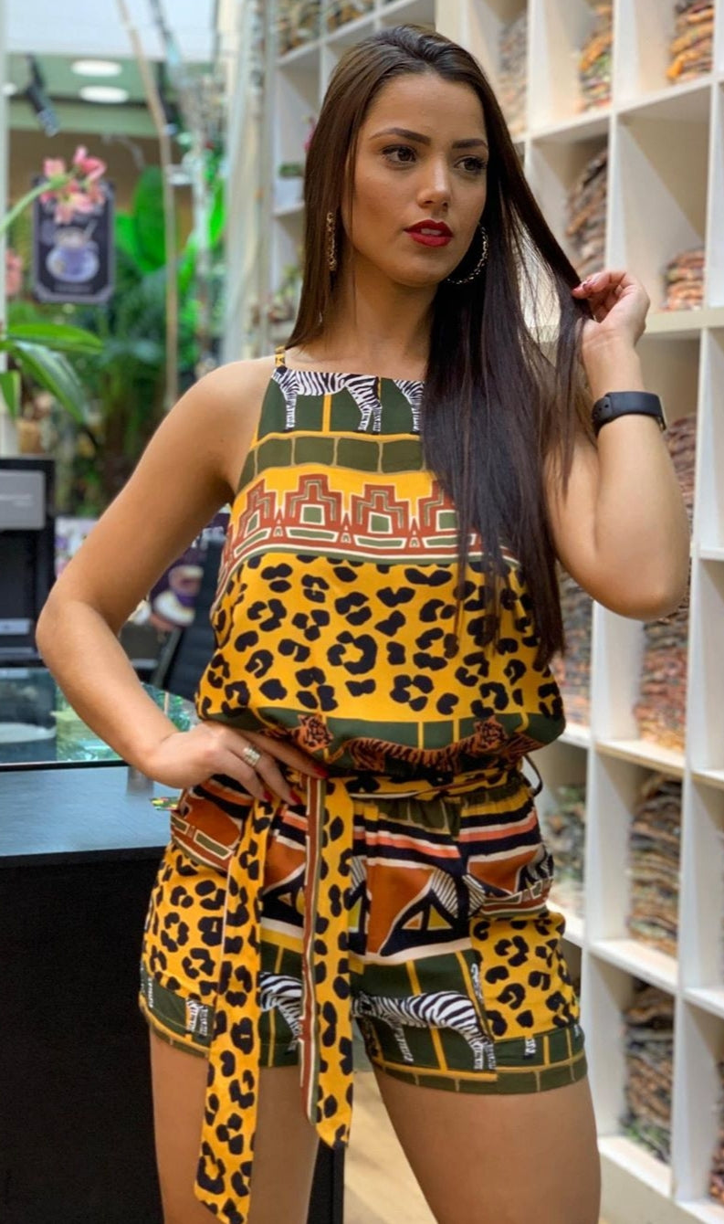 Macaquinho em viscose fresca estampa África.
