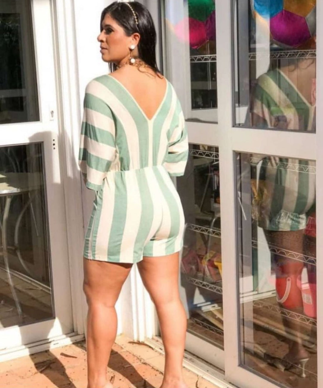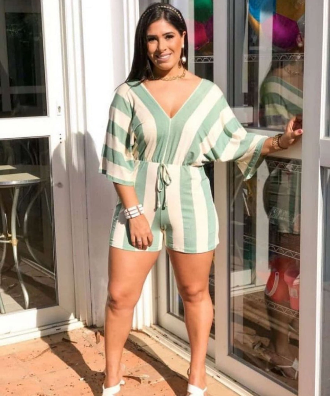 Macaquinho em malha leve, caimento elegante que não marca, manga flair ,decote em v. Tecido com bastante elastano. Proposta para o verão,