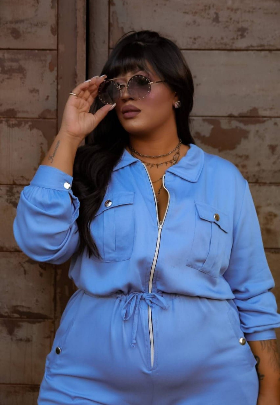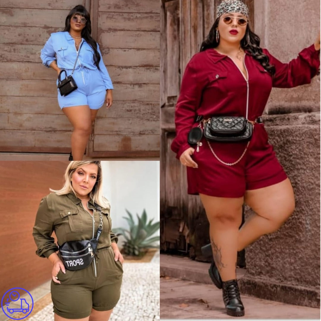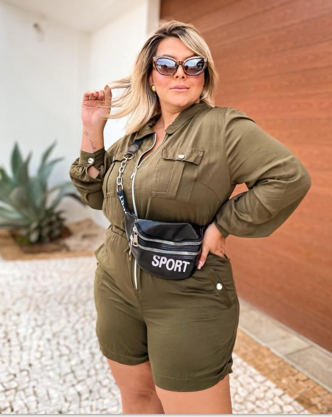 Macaquinho em sarja Manga longa com zíper de abertura frontal e bolsos laterias , modelo manga longa , bem leve e confortável , não marca. Linha Plus Size