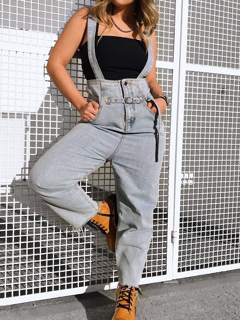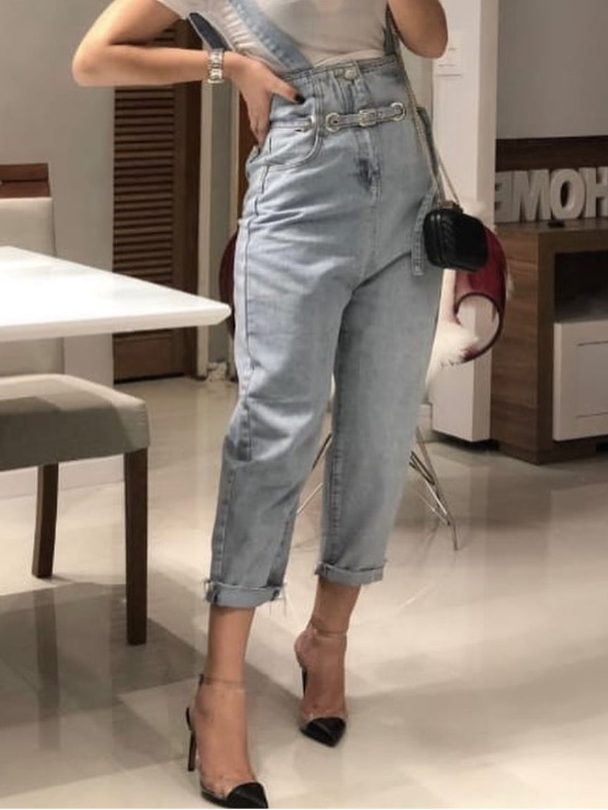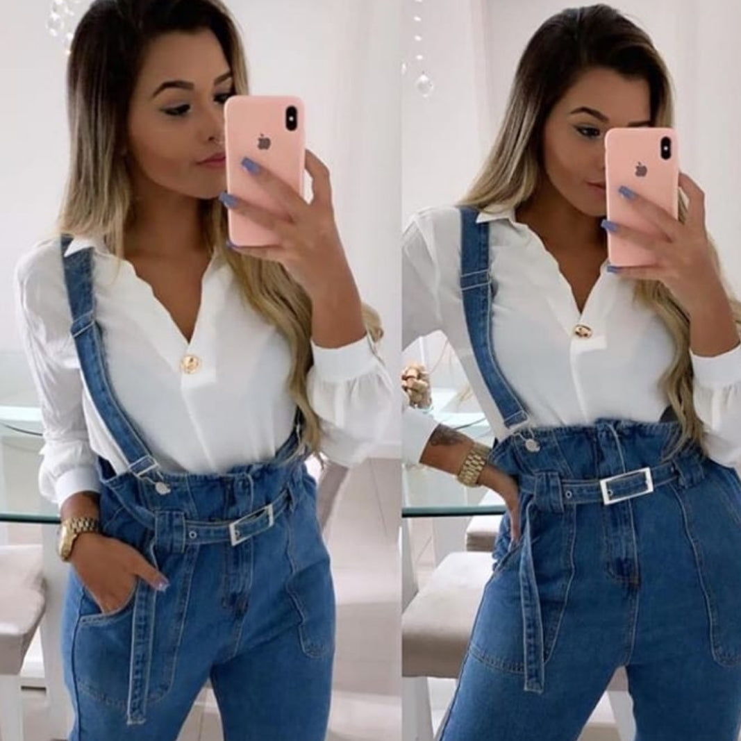 Salopete jeans sem lycraprática e funcional podendo ser usada com Calça apenas. Veste muito bem, bolsoss frontal e traseiro, ilhos na cintura para passar o cinto qie acompanha a peça tornando ele um modelo clochard. Nas tonalidades jeans claro e escuro