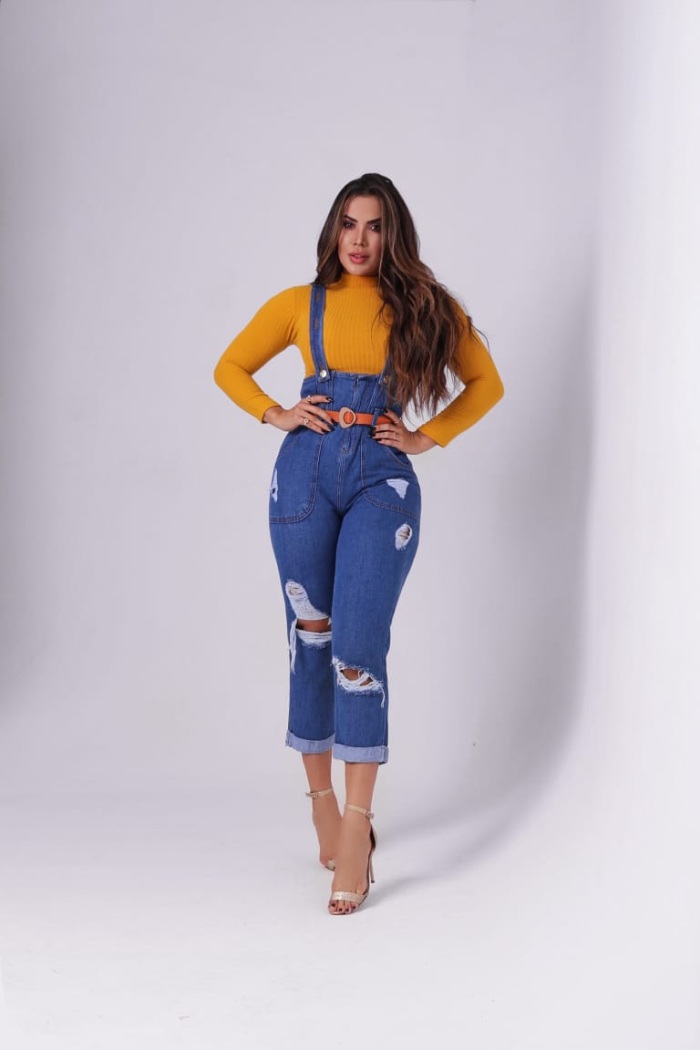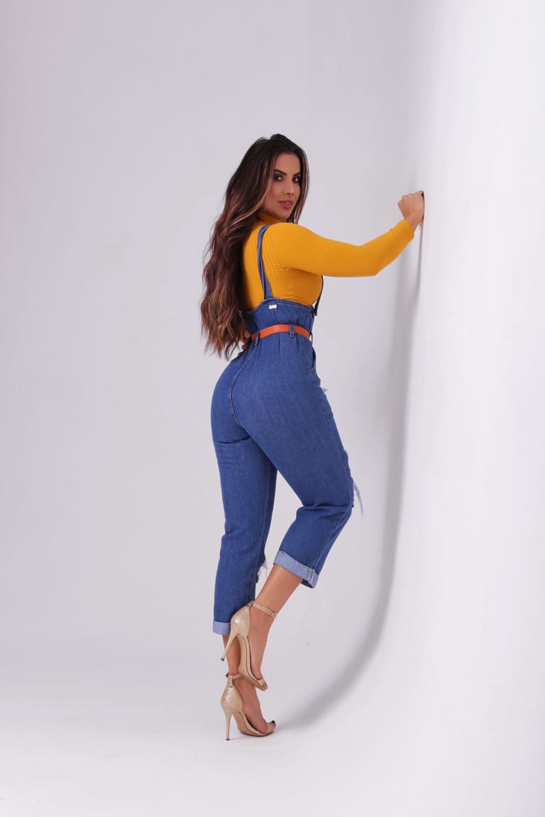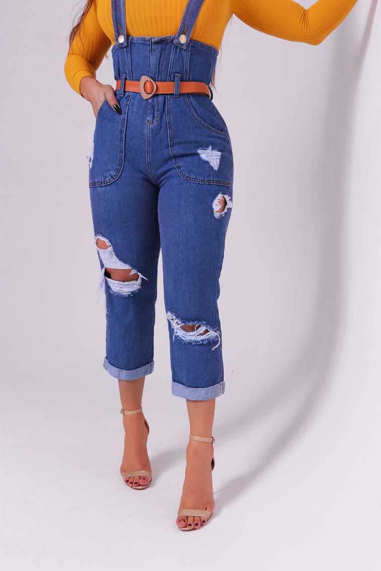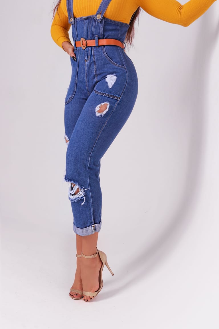 Salopete em jeans 100% algodão cintura alta com costumizacao frontal um estilo super próprio , lindo e descontraído ( não acompanha cinto)