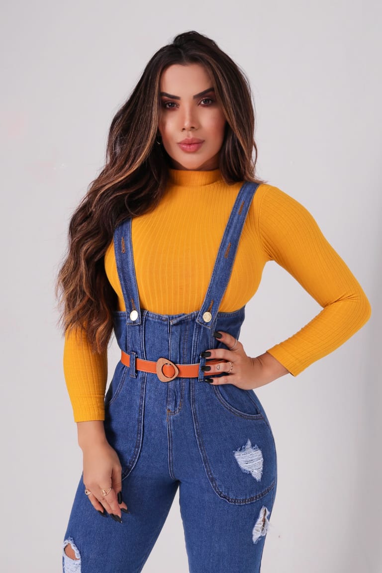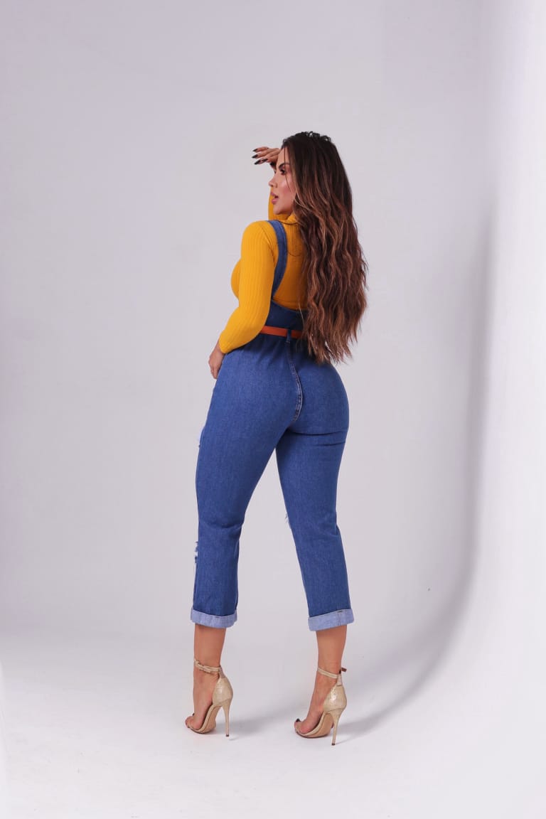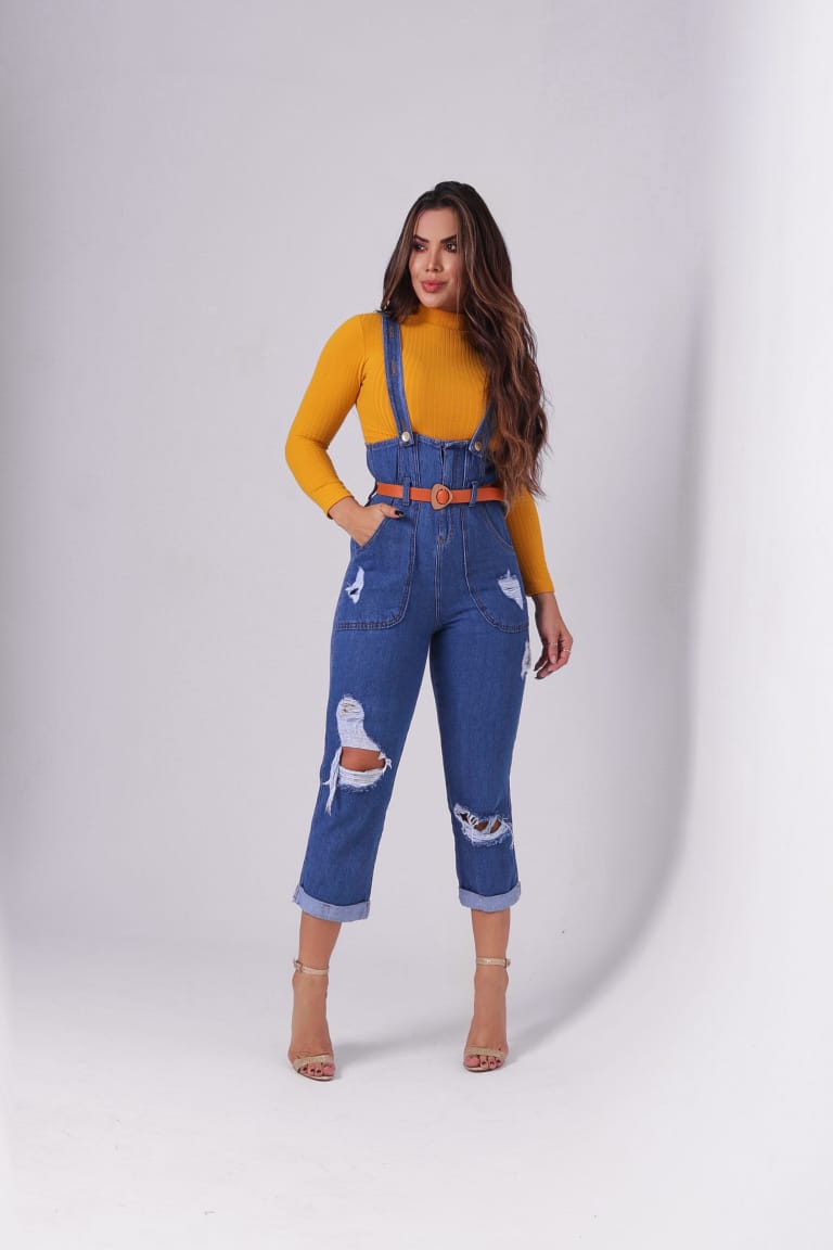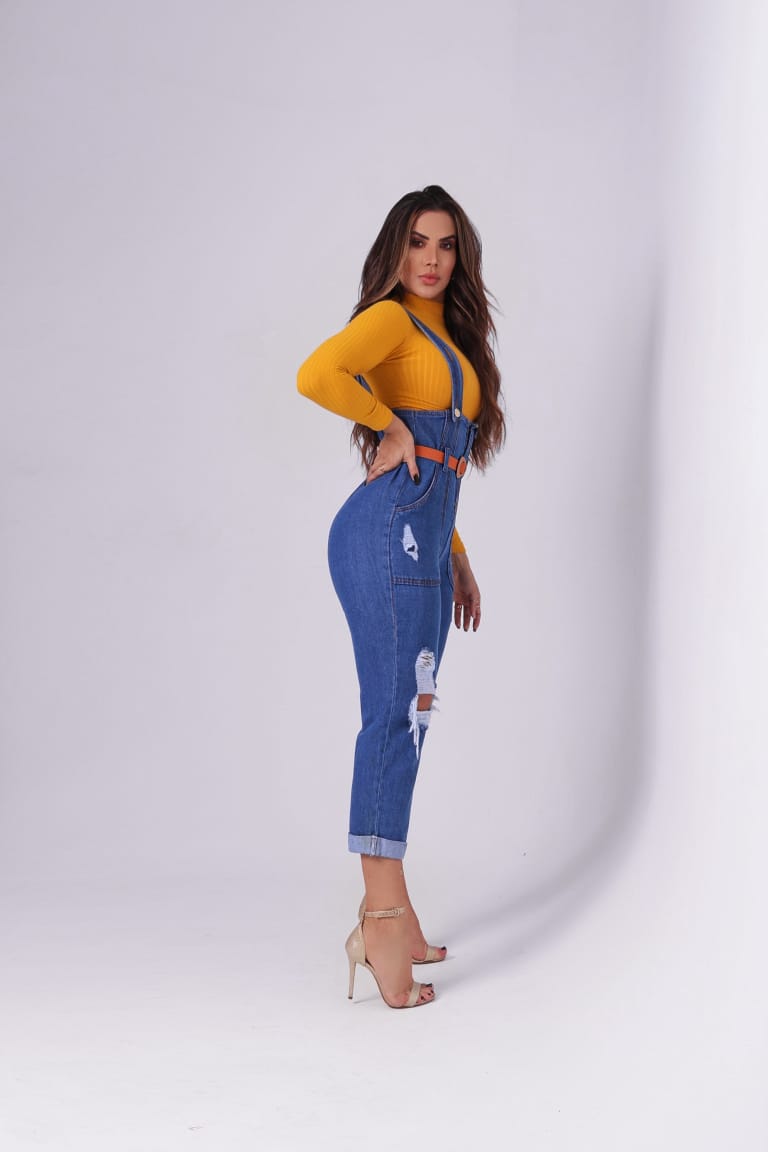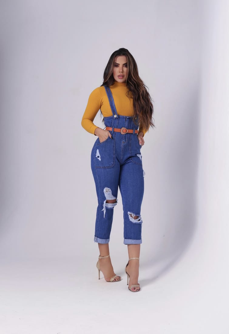Salopete em jeans 100% algodão cintura alta com costumizacao frontal um estilo super próprio , lindo e descontraído ( não acompanha cinto)
