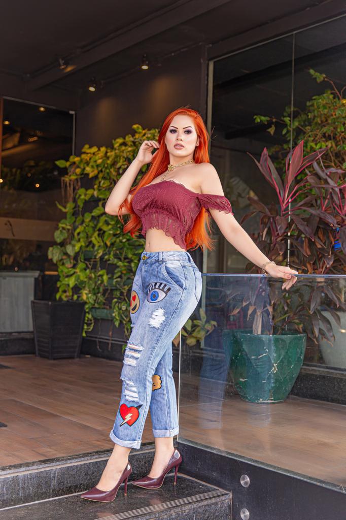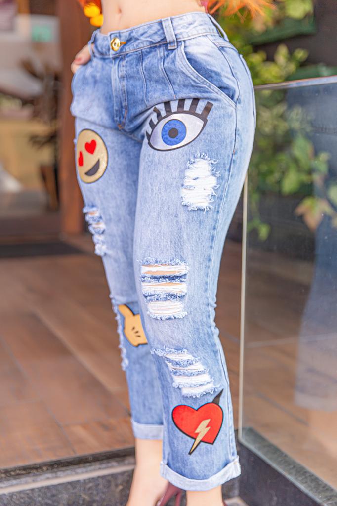 Calça jeans sem elastano customizada e destinada com lavem diferenciada . Jeans de excelente qualidade e caimento perfeito.