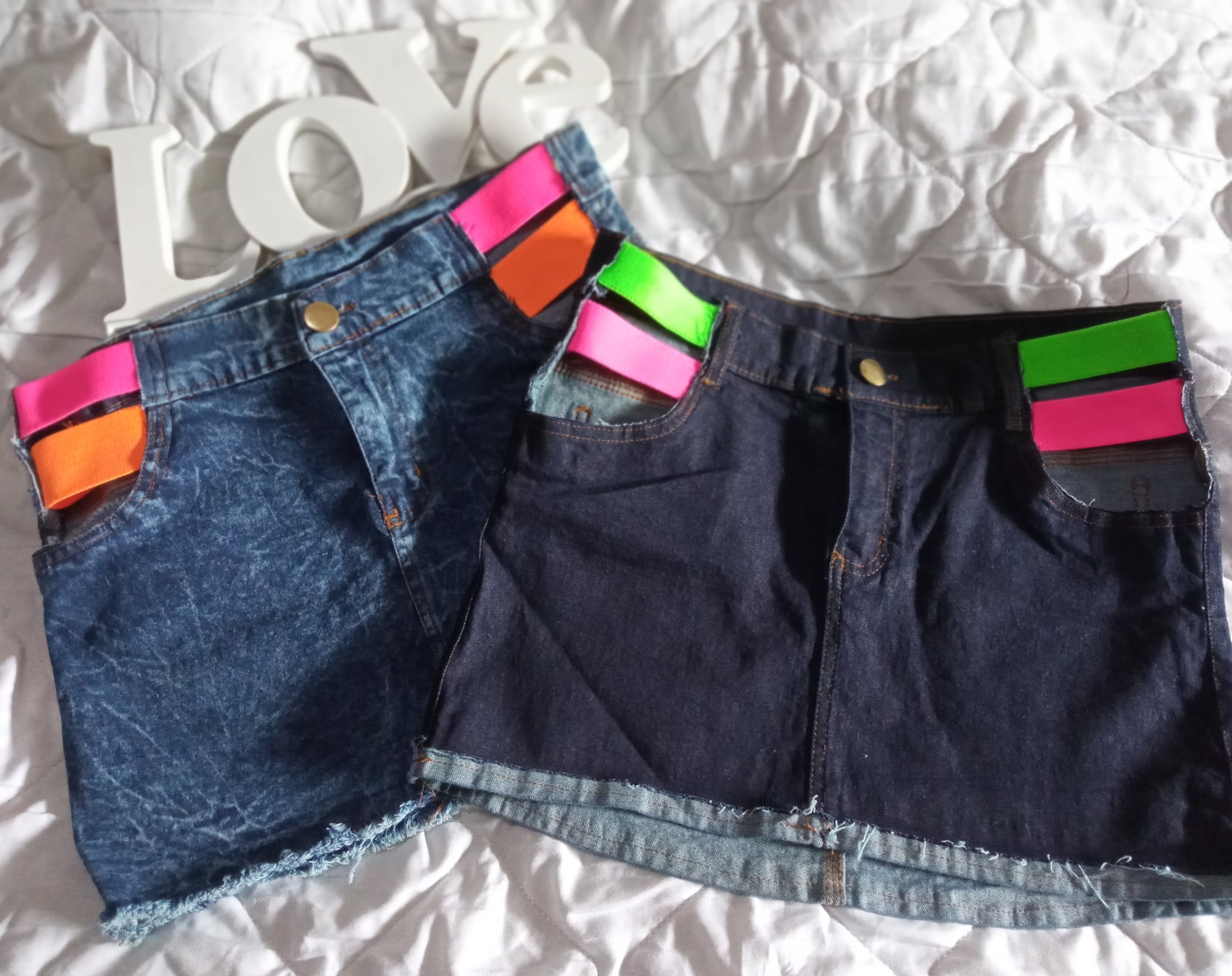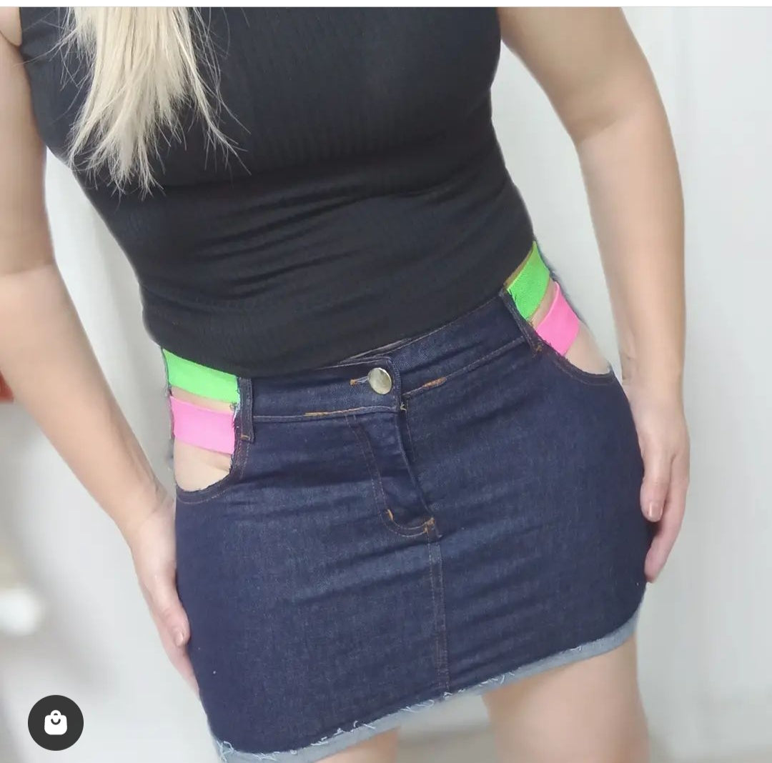 Mini saia jeans neon
