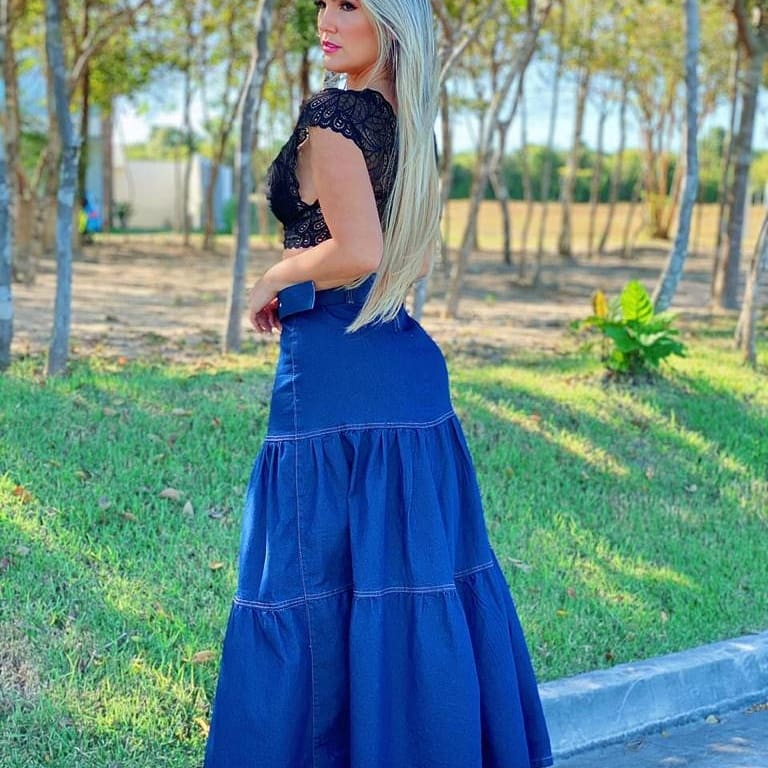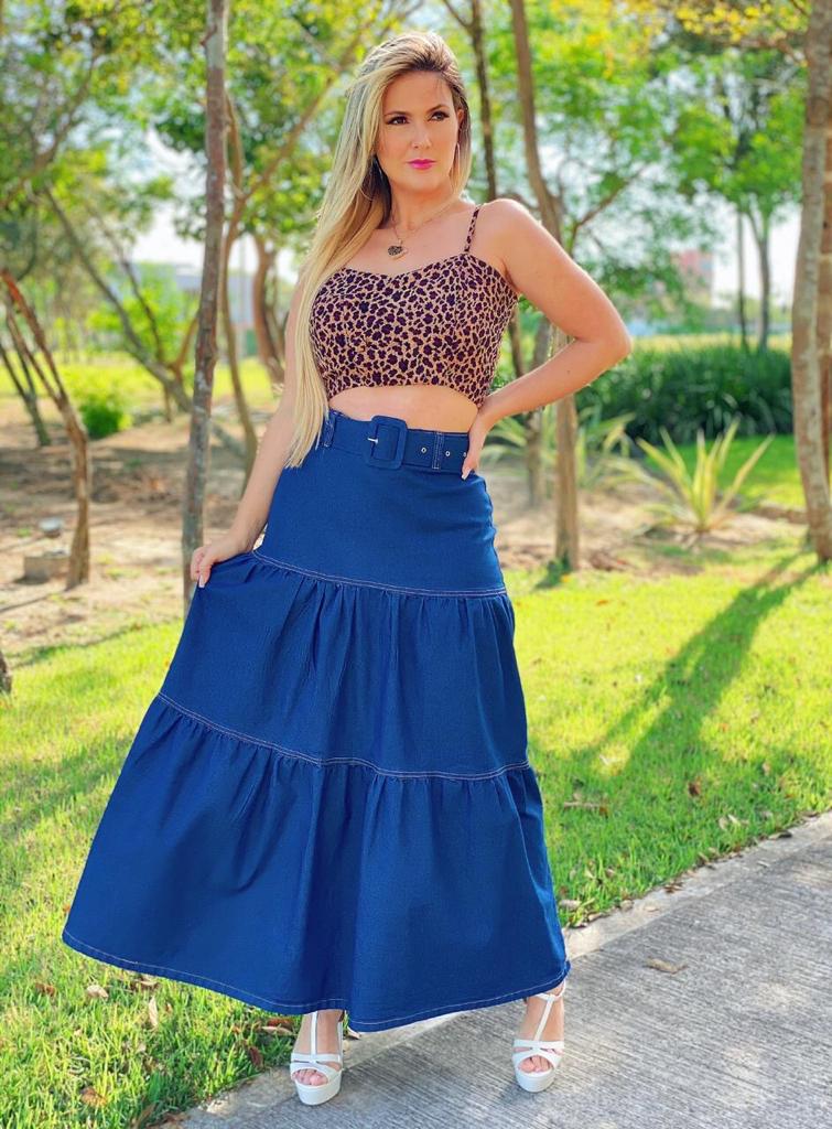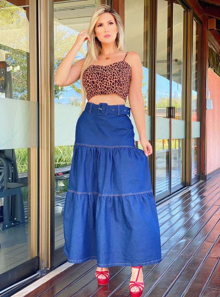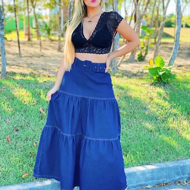 Saia jeans modelo 2 Marias com elastano, caimento leve, tecido de excelente qualidade, veste muito bem além de diferente e moderno.( acompanha cinto)