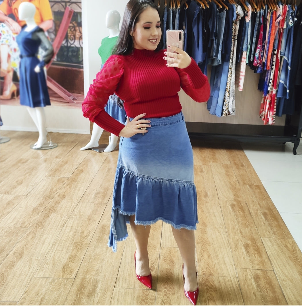 Saia em jeans leve 100% algodão  na tonalidade jeans lavado customizada desfiada na barra no estilo mullet, super diferente um modelo totalmente único além de vestir super bem. Disponível do tamanho 36 ao 44