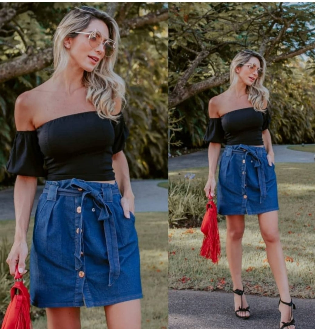 Linda e em promo só nesse fds. Aproveite super leve,jeans de verão com botões frontais e faixa para amarração. Disponiveis nos tamanhos p,m,g e vc