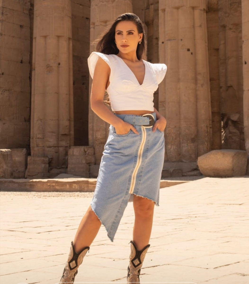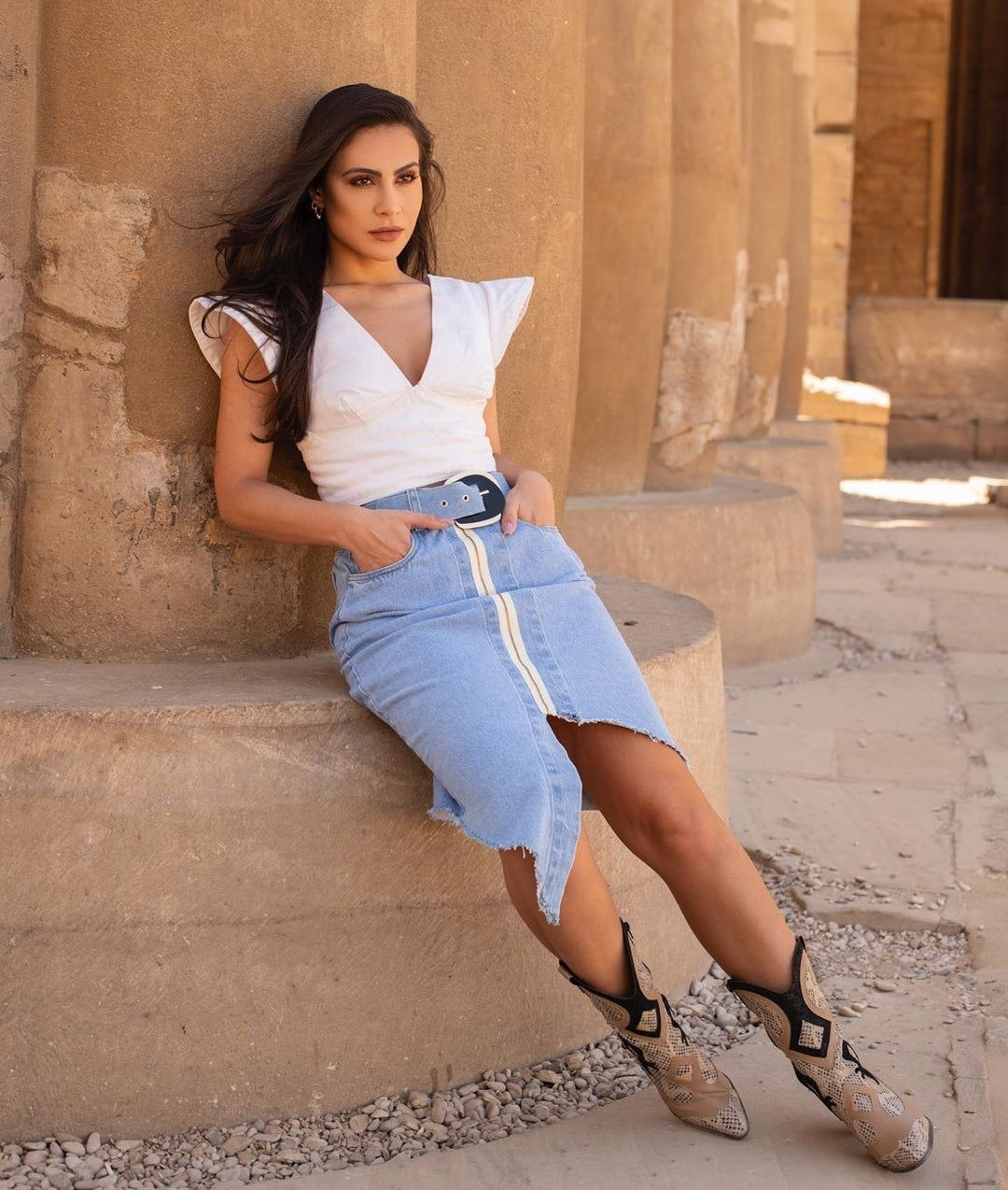 Saia jeans sem elastano modelo midi com detalhe em ziper frontal e cinto forrado na mesma tonalidase. Jeans com lavagem destonada podendo haver variações.  Disponível do tamanho 36 ao 42.