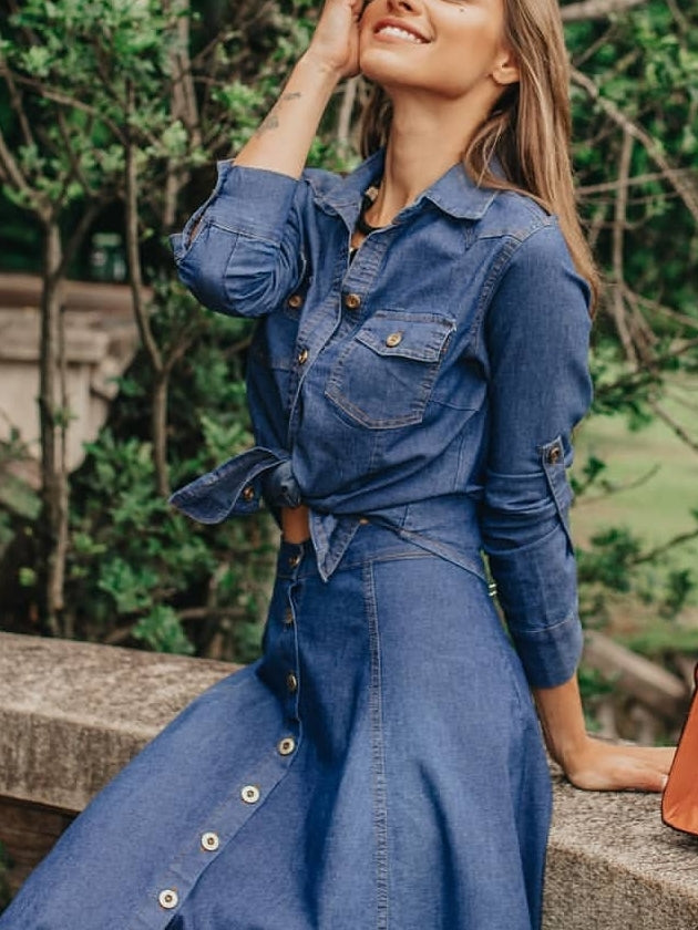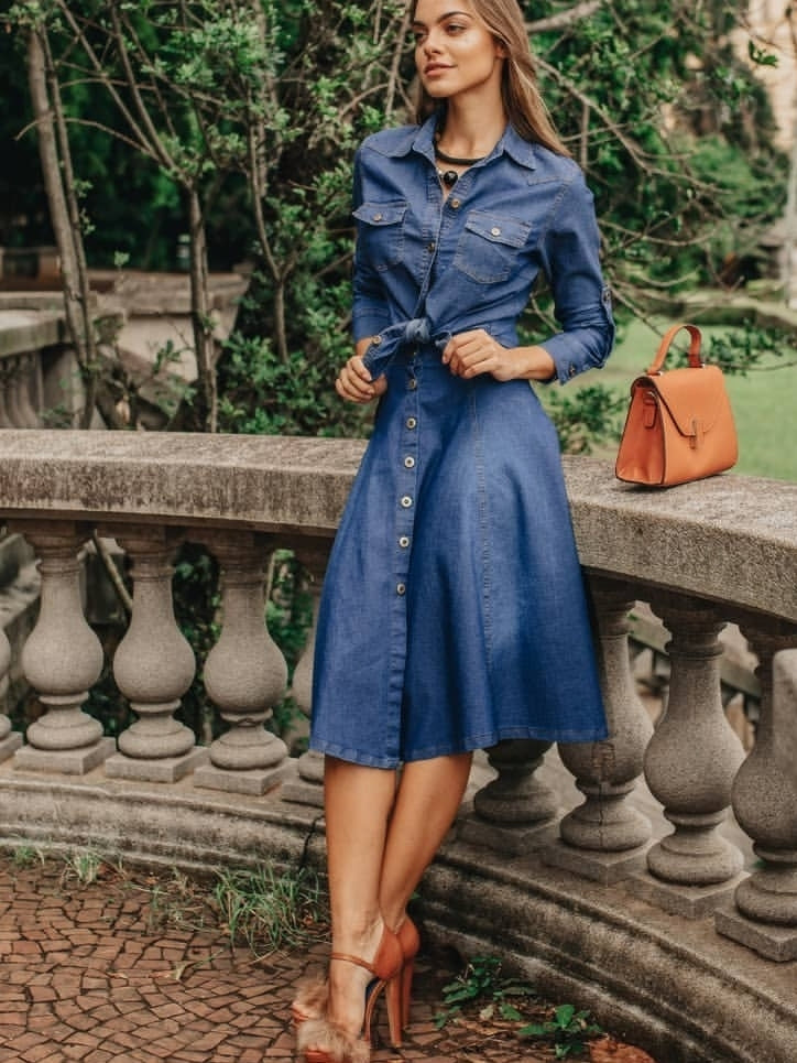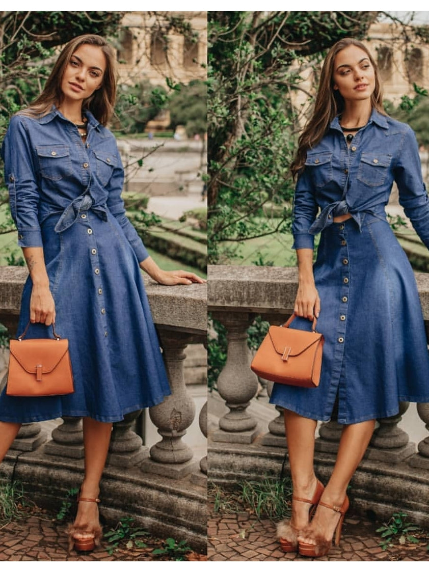 Saia jeans leve midi com lycra leve, botões frontaus sem bolso. Modelo despojado, elegante e rodado.