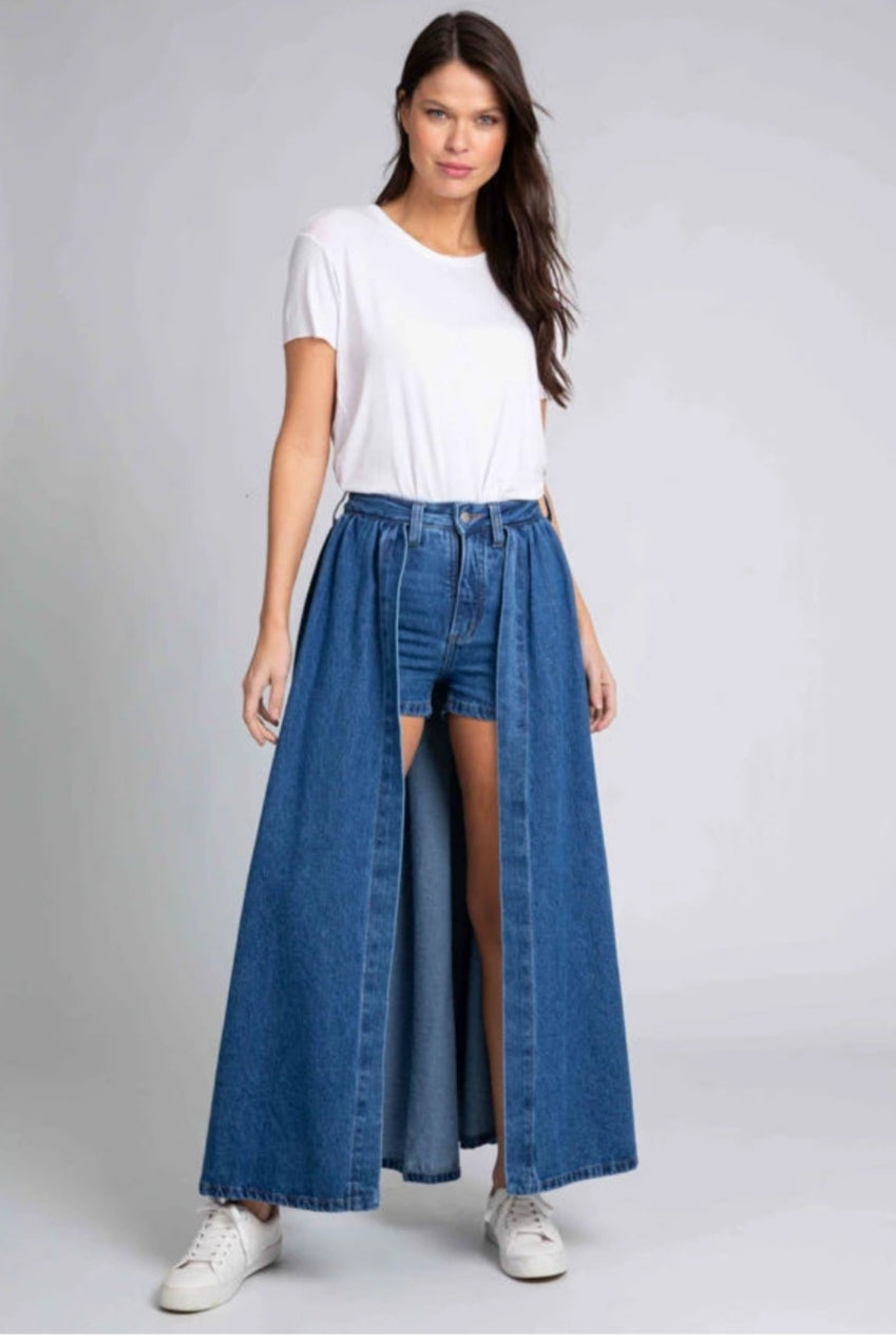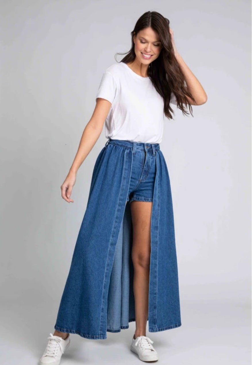 Shorts jeans sem elastano, 100%algodão com saia acoplada no shorts, jeans de excelente qualidade e caimento leve , não encolhe . Veste muito bem