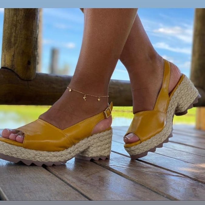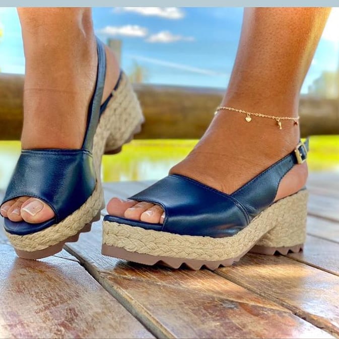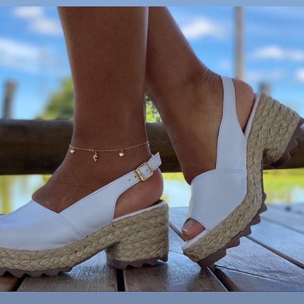 Sandália em couro na parte superior e cortiça na parte inferior do solado com sola tratorado e saltinho bloco de 6 cm traseiro e 3 cm frontal . Leveza e conforto com tira de apoio traseiro que fornece segurança a peça