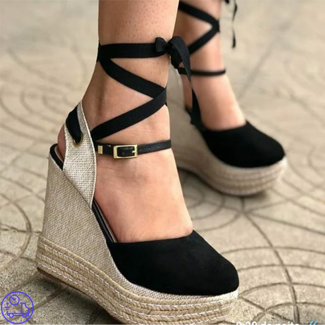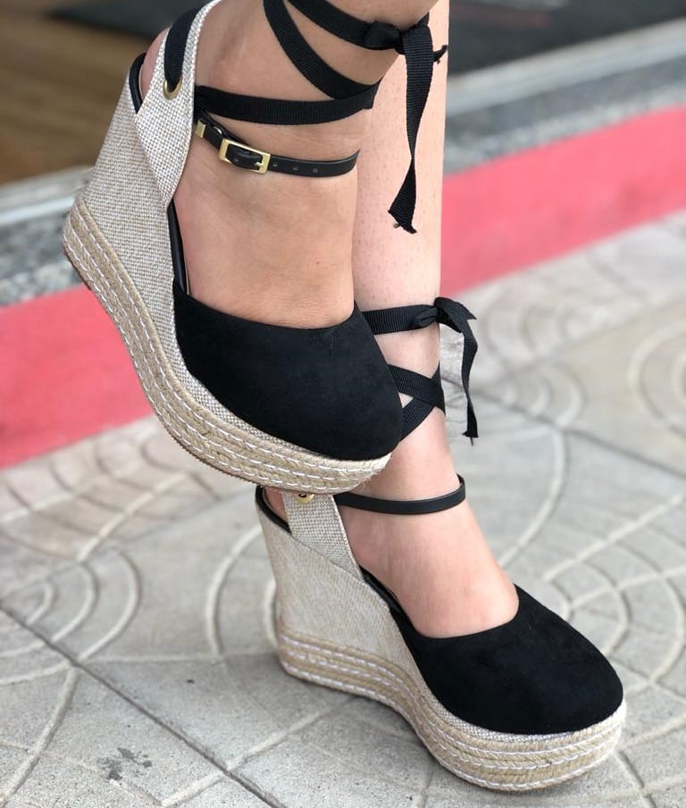 Sandália com solado 8 cm traseiro e 4 cm frontal, solado PU emborrachado e forrado em tecido, parte superior aveludada com tiras que podem ser usadas separadamente. Linda , leve e confortável.