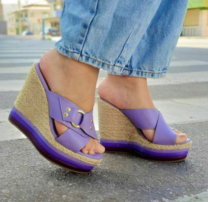 Tamanco com solado em cortiça e PU acabamento de tiras em courino