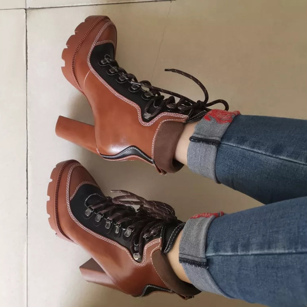 Bota em couro modelo coturno com cadarço para amarração na parte superior ,cano curto com solado emborrachado tratorado , meia pata frontal de 3 cm e traseiro de 10 cm.todo forrado , macio e confortável. Leve de alta durabilidade.