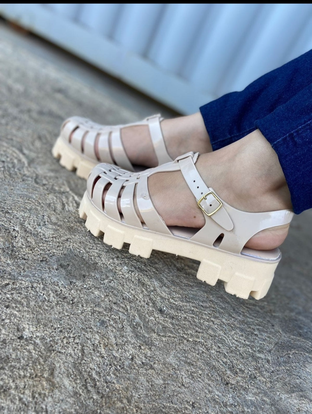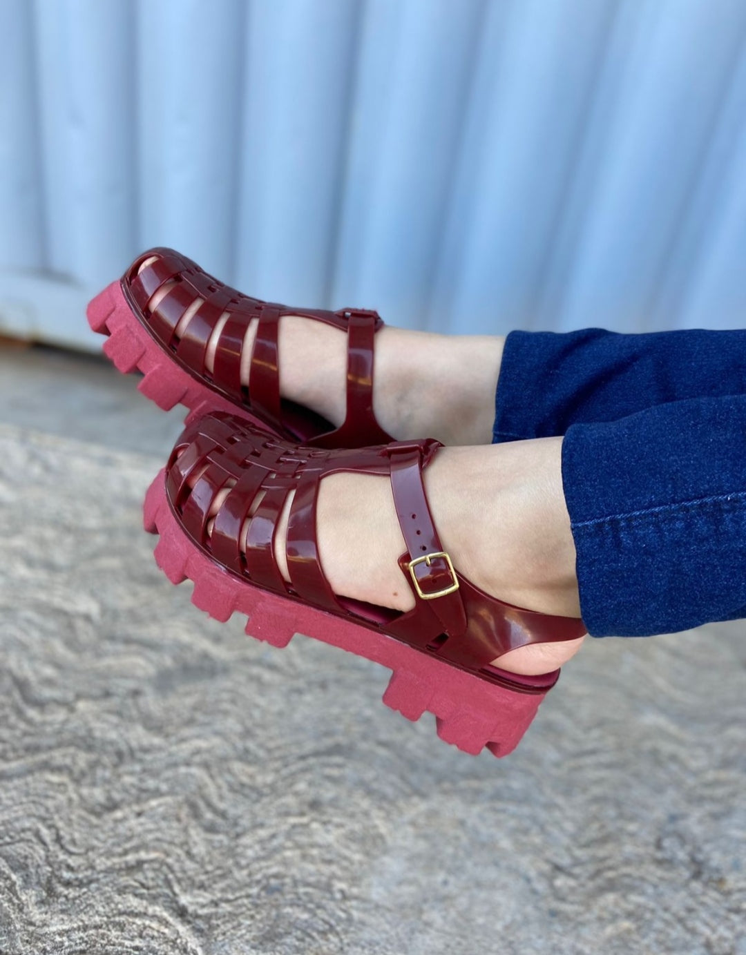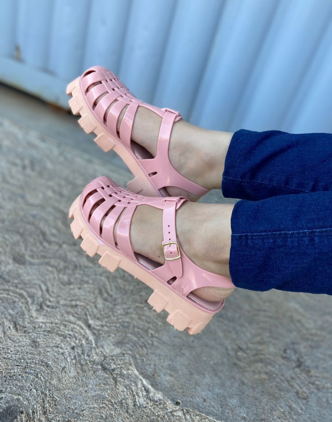 Sandália em plástico resistência modelo aranha com solado emborrachado tratorado com altura de  5cm,  com fecho lateral . Leve e confortável não machuca e não deixa mau cheiro
