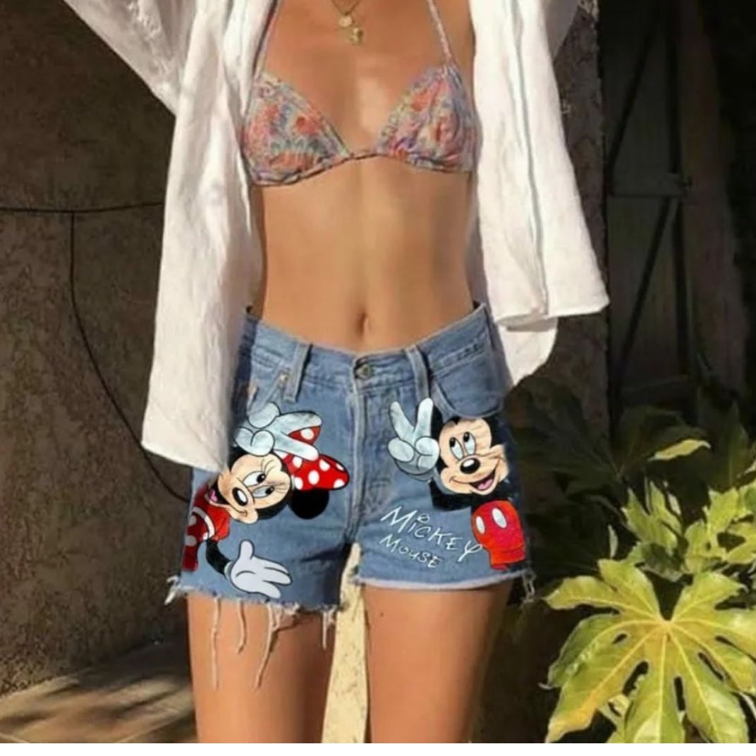 Shorts em jeans com ou sem lycra , pintado a mão . Produto produzido por demanda. Disponível do 34 ao 54