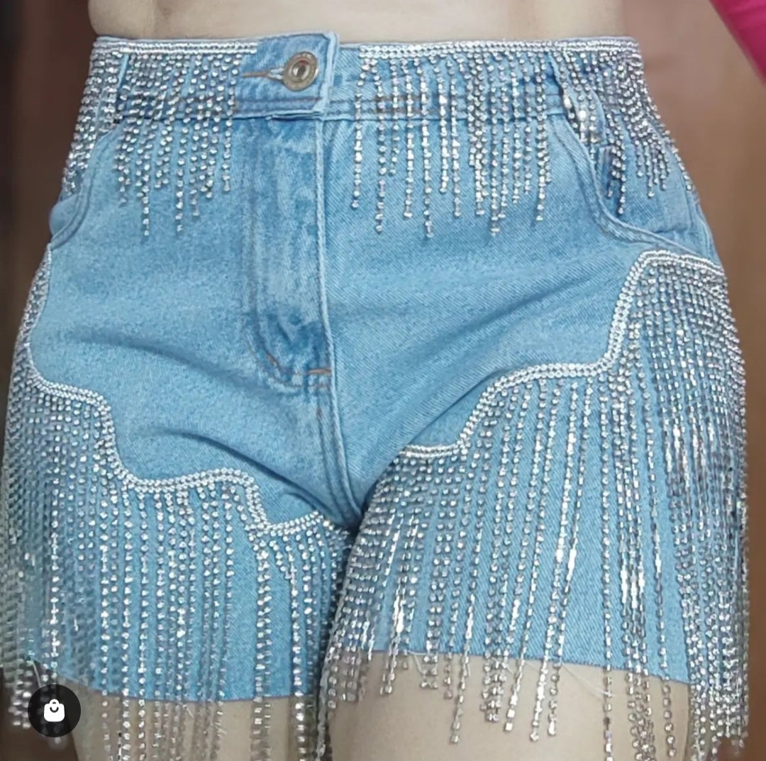 Short em jeans sem lycra customizado em strass na parte frontal , produto produzido por pedido com tempo de produção de 7 dias uteis após a compra para envio , pode haver variações na tonalidade do jeans e do strass de acordo com a disponibilidade no ato da confecção, disponível do 34 ao 54