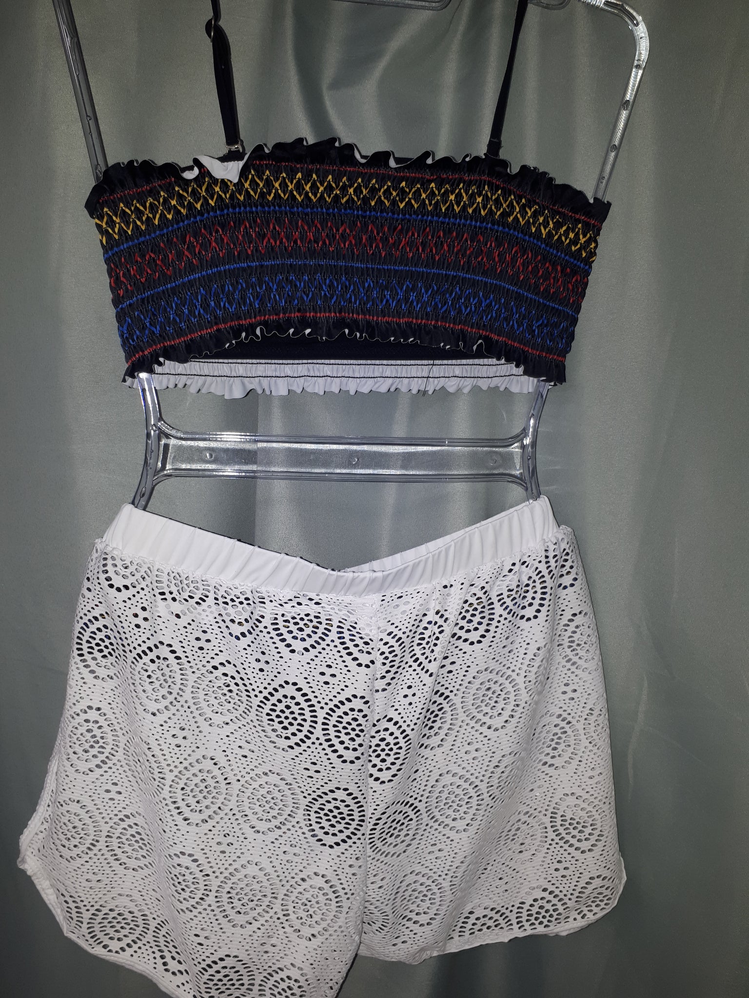 Shorts rendado com elástico na cintura super larguinho bem confortável ideal para praia piscina ou cruzeiros combina com qualquer biquíni veste muito bem nos tamanhos p m e g