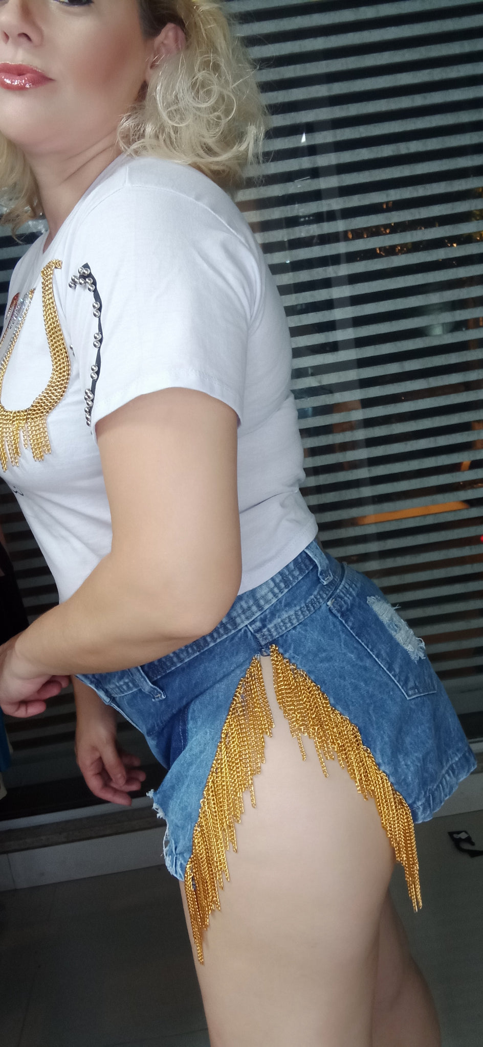 Shorts jeans sem elastano 100% algodão com detalhe lateral com de abertura e correntes de  strass , coz alto , pode se usado com biquíni, shortinho . disponível do 34 ao 46